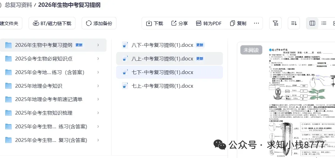 1.我用夸克网盘给你分享了「2026年生物中考复习提纲」,点击链接或复制整段内容,打开「夸克APP」即可获取。