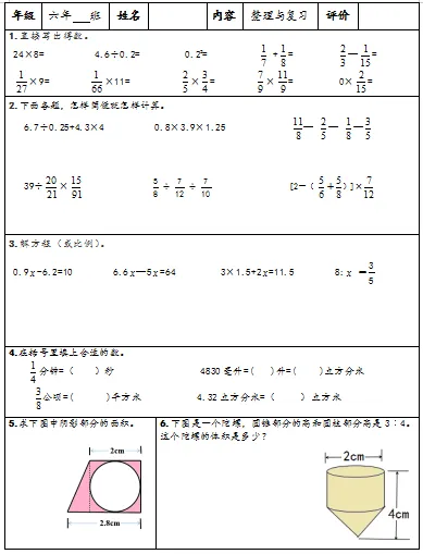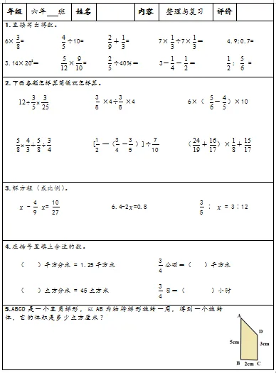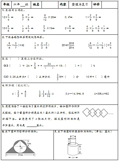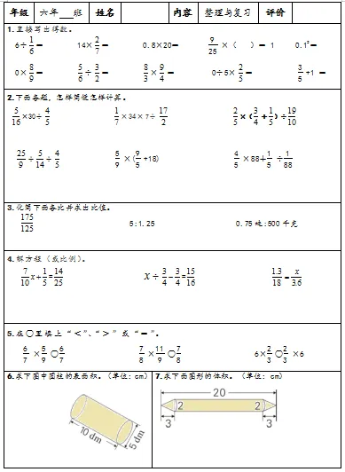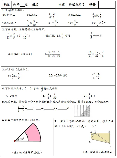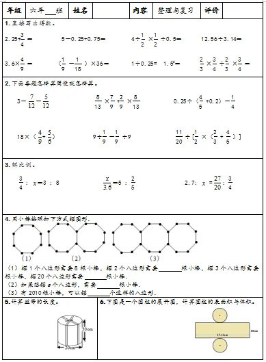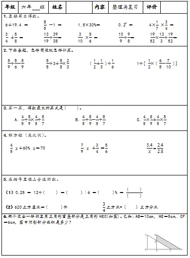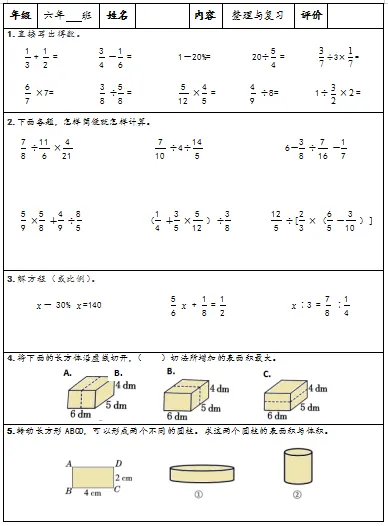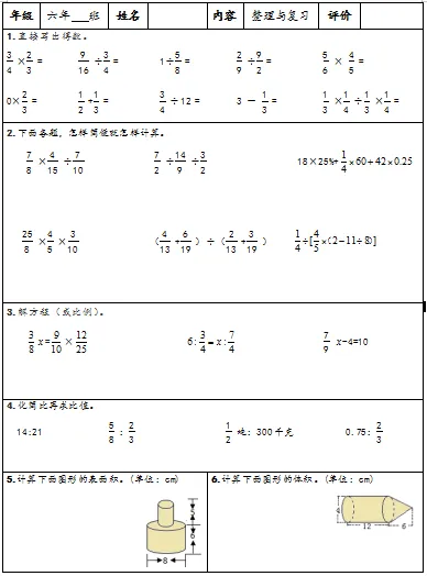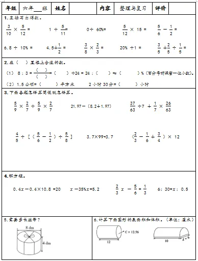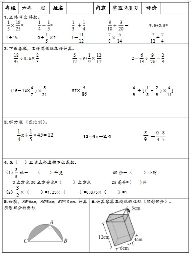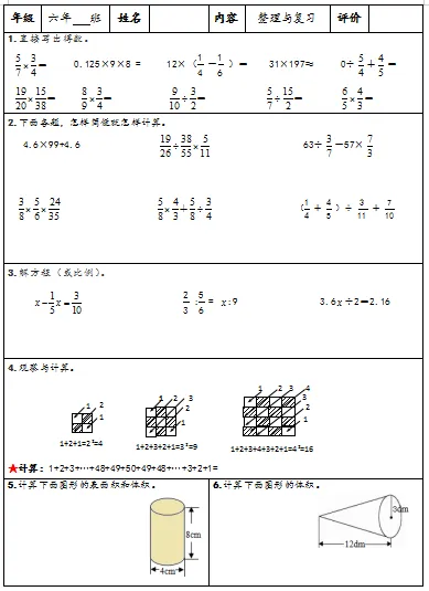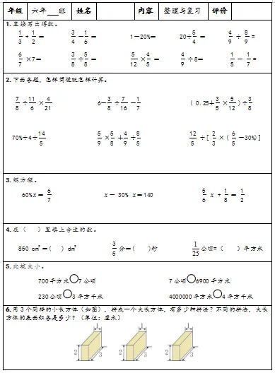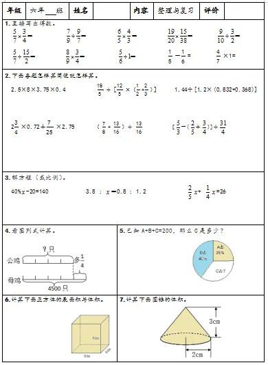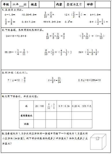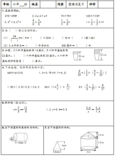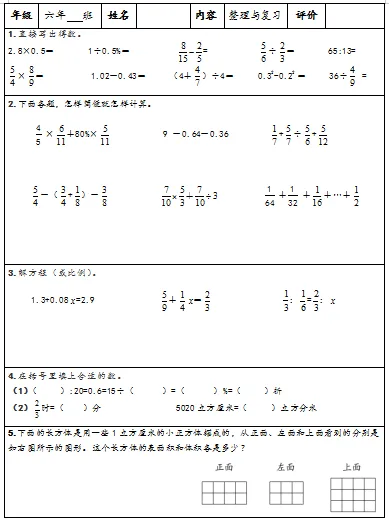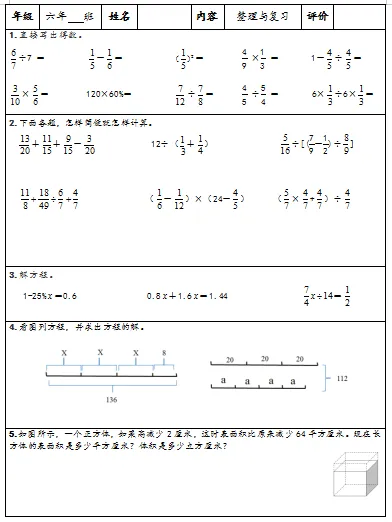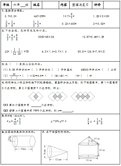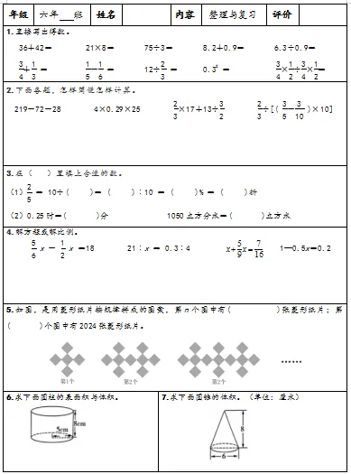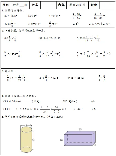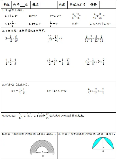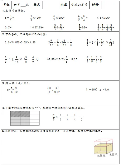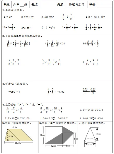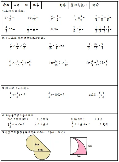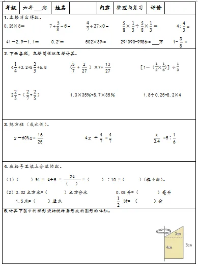 【小升初复习资料】小学数学六年级下册总复习阶段计算题专项训练习题卡,共83份题组