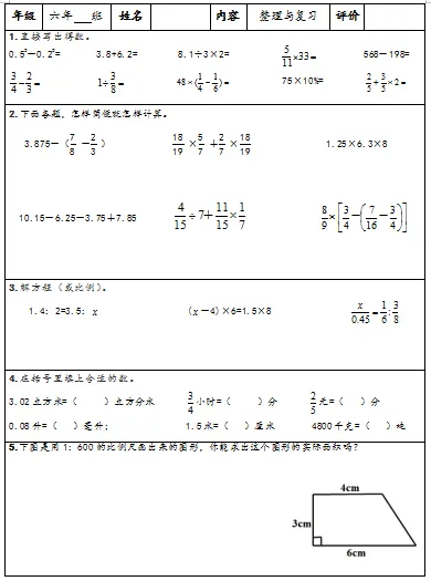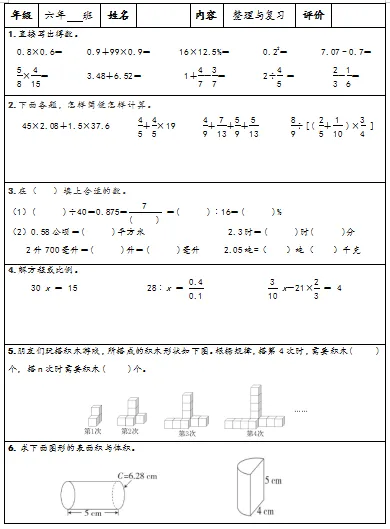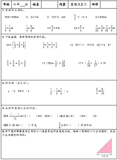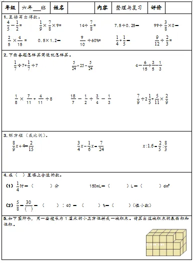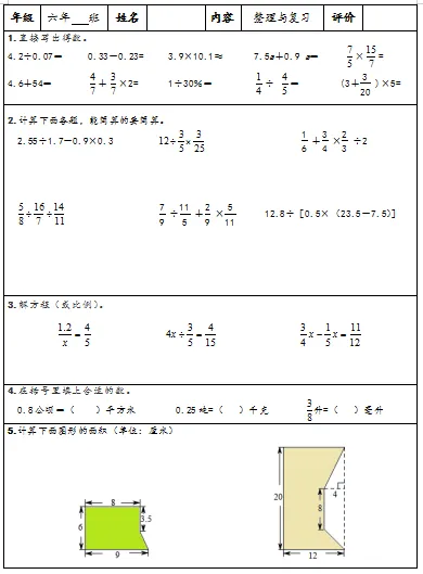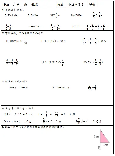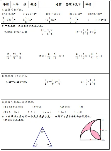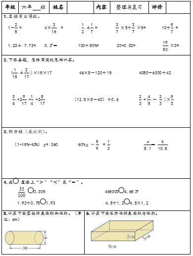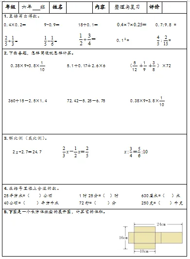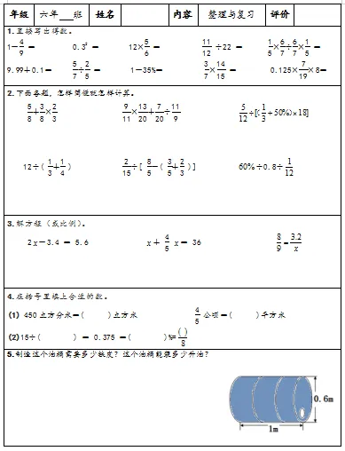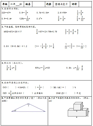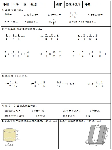 >【小升初复习资料】小学数学六年级下册总复习阶段计算题专项训练习题卡,共83份题组