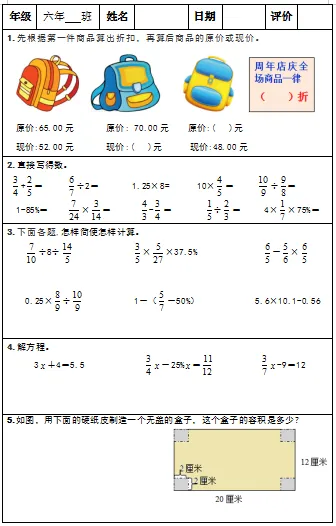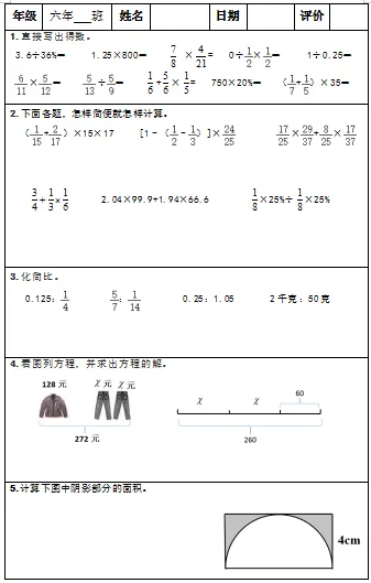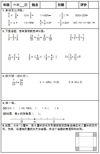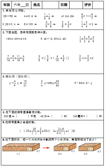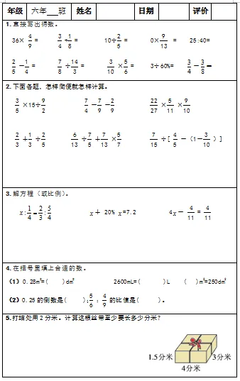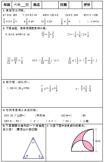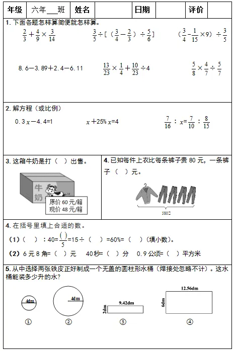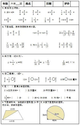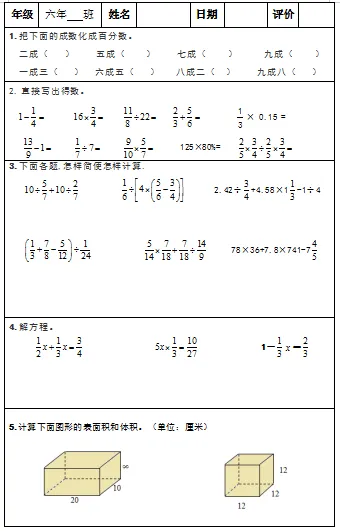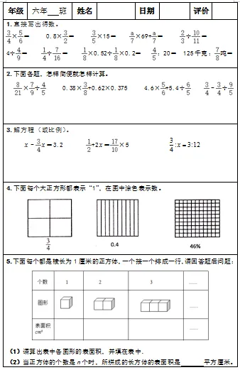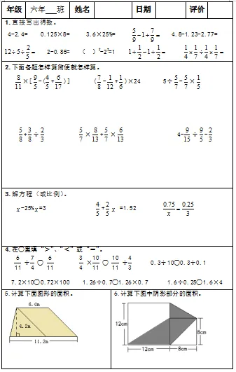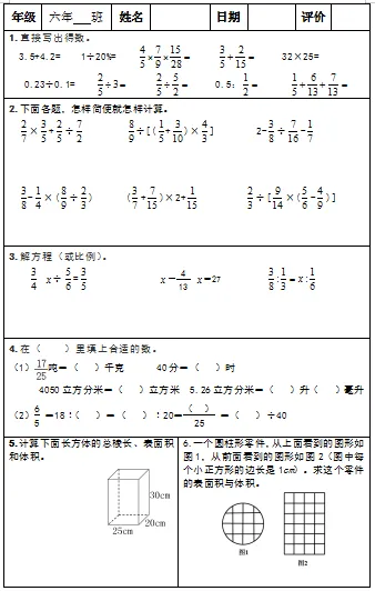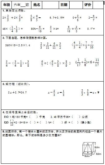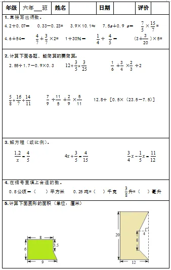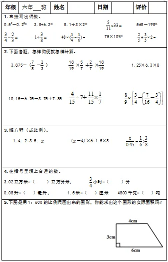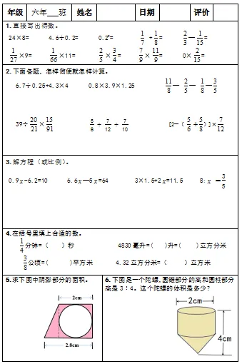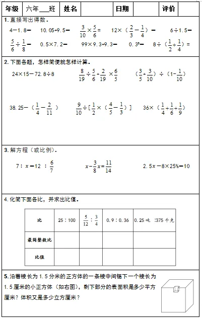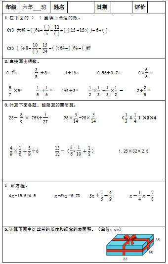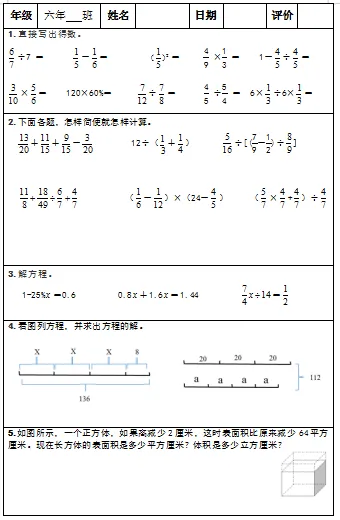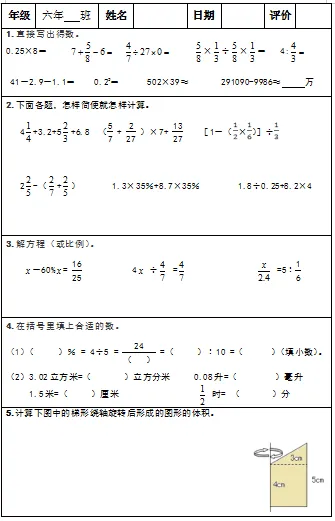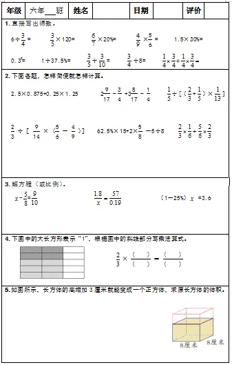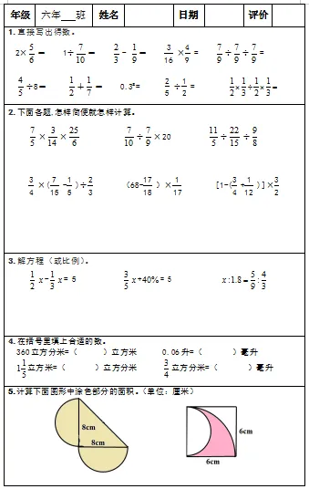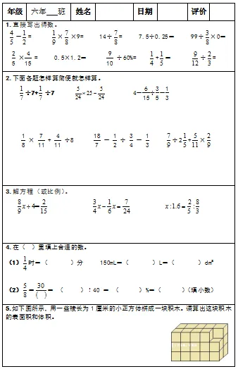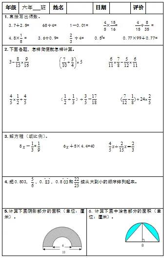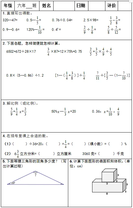 【小升初复习资料】小学数学六年级下册总复习阶段计算题专项训练习题卡,共83份题组