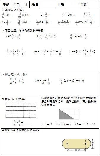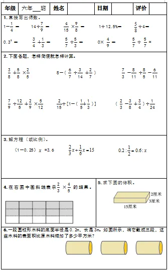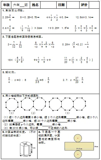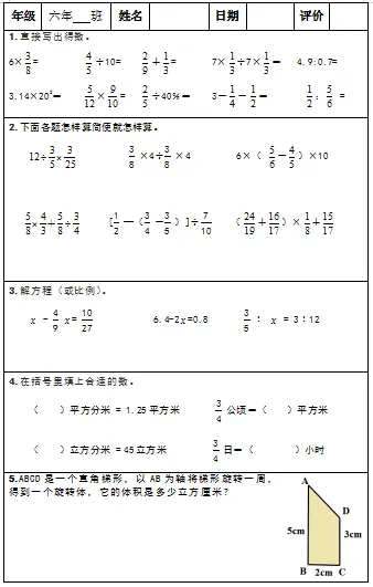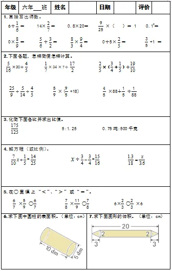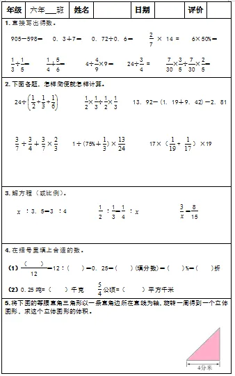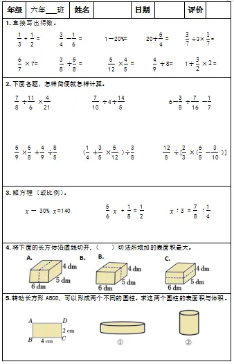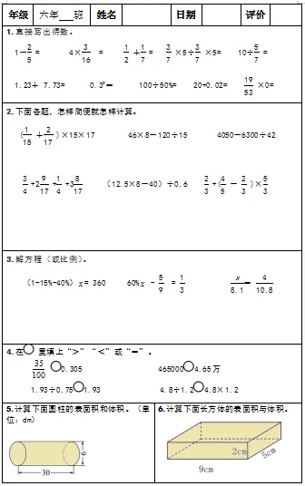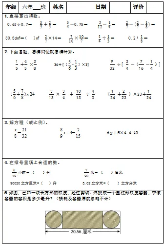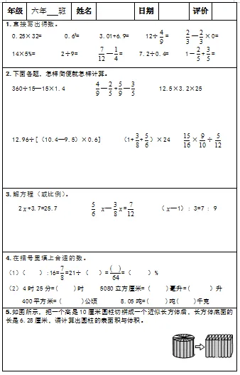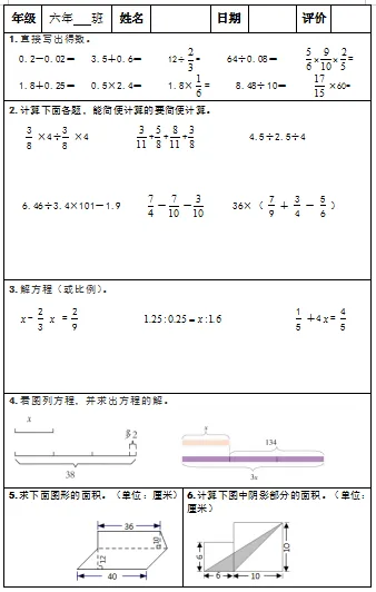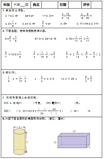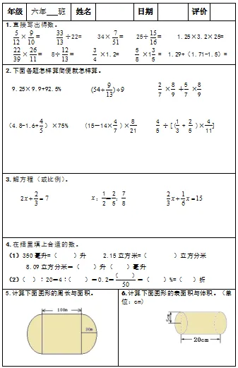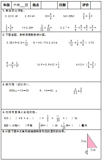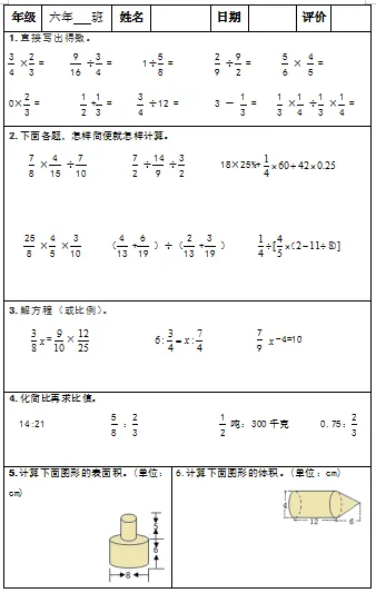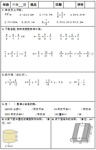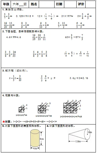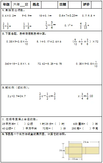【小升初复习资料】小学数学六年级下册总复习阶段计算题“天天练”习题卡,共73份题组