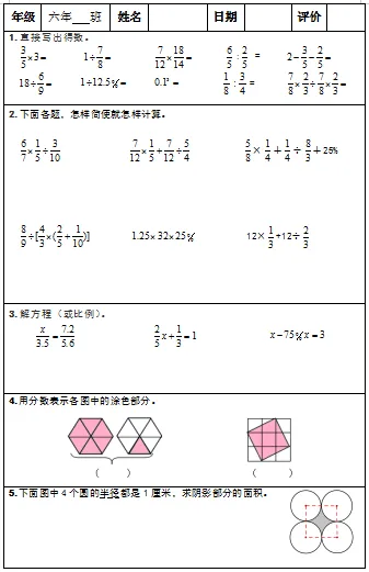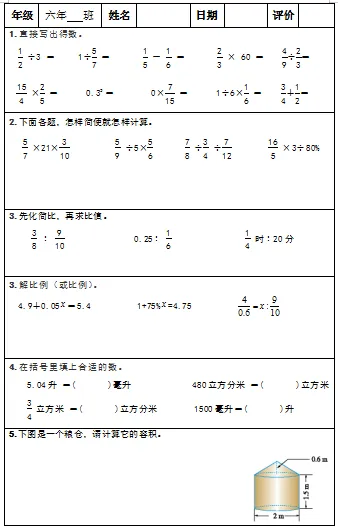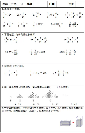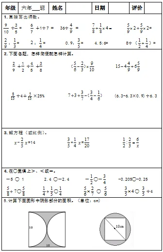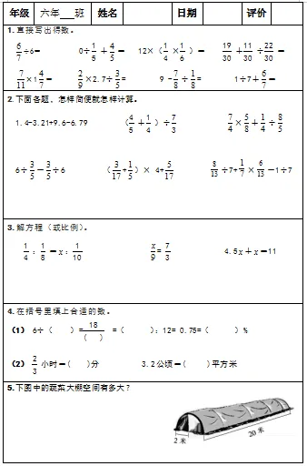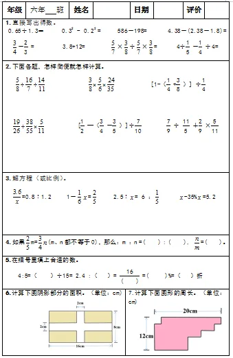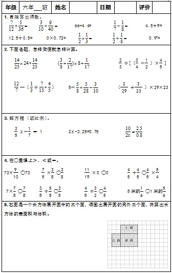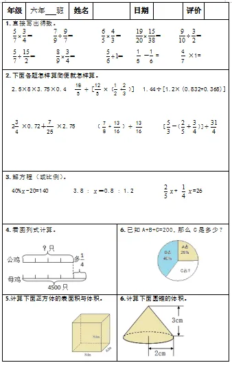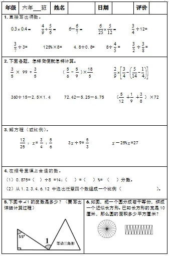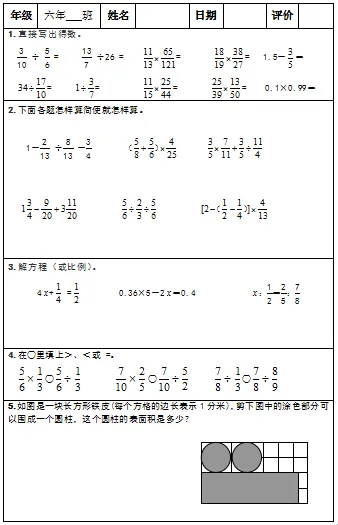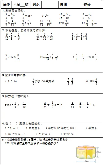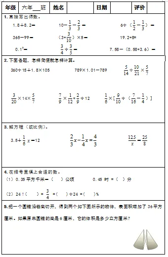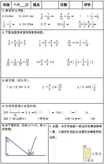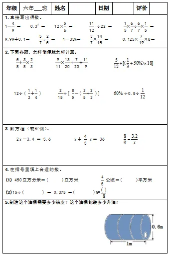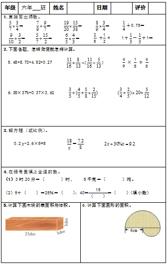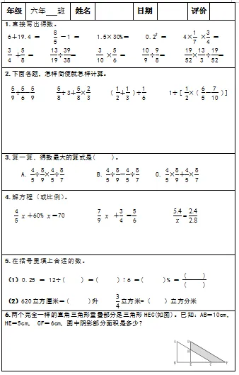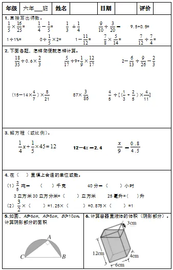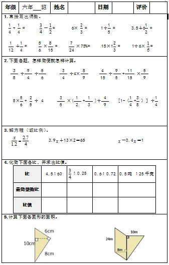 【小升初复习资料】小学数学六年级下册总复习阶段计算题“天天练”习题卡,共73份题组