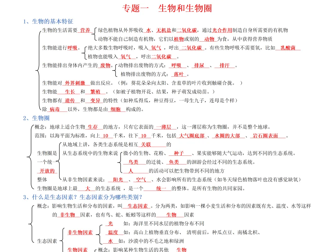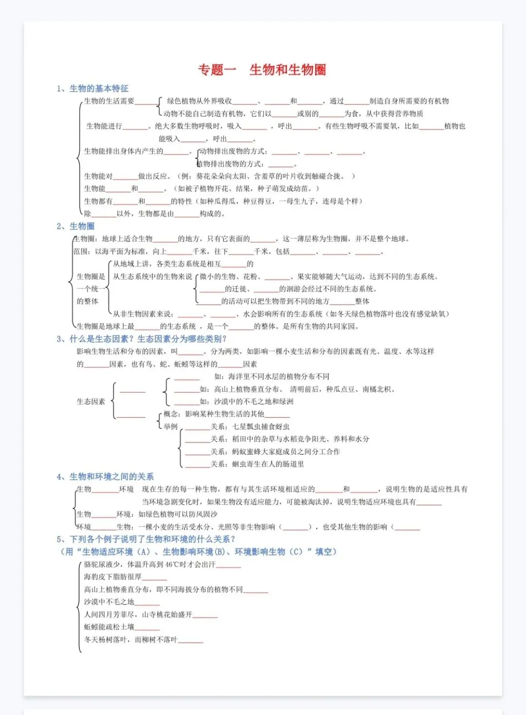 我们整理了一套生物、地理中考复习资料,主要包括: