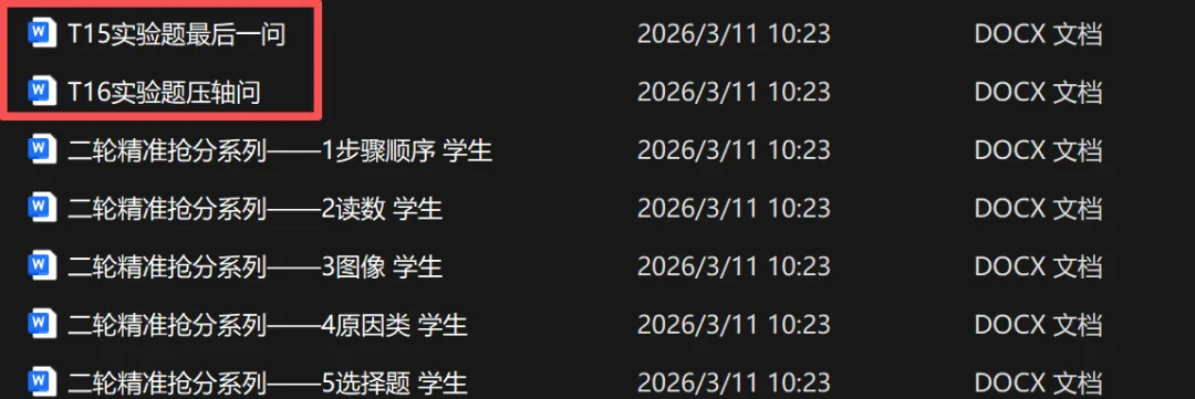 实验题15-16,情况又不一样了学生集中做一段时间的实验题,正确率就会提高。但如果有一个星期不做,错误率和题感就又会变差,一松就垮,这其实是由实验题的考察特点决定的。知识点比较散,跨度比较大,逻辑性可能没有那么强。针对这种情况,要想抢分,整体策略是——反复多次,同样需要通过做三套试卷来查漏补缺:1. 薄弱项 这三套试卷中,自己可能总是错实验的不定项选择,那就专门去做不定项; (a) 有的同学是原因类分析不太会; (b) 有的是误差类分析不太会; (c) 还有的是对读数不太熟悉。 这些都要按题型分类来攻克。