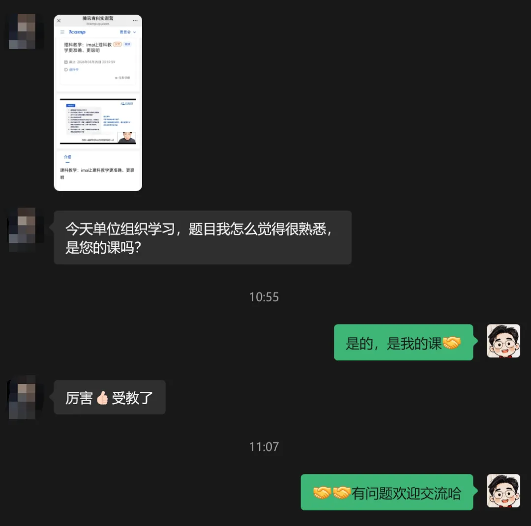 今天有位家长单位组织学习AI,正好看到我的课