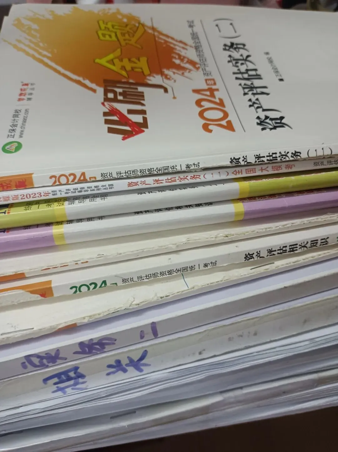 年前大扫除,收拾出来近几年的考证资料,厚厚的几大沓,有资产评估师的必刷真题、大模考及纸件讲义,也有知识产权师的三色讲义和近几年真题.......
