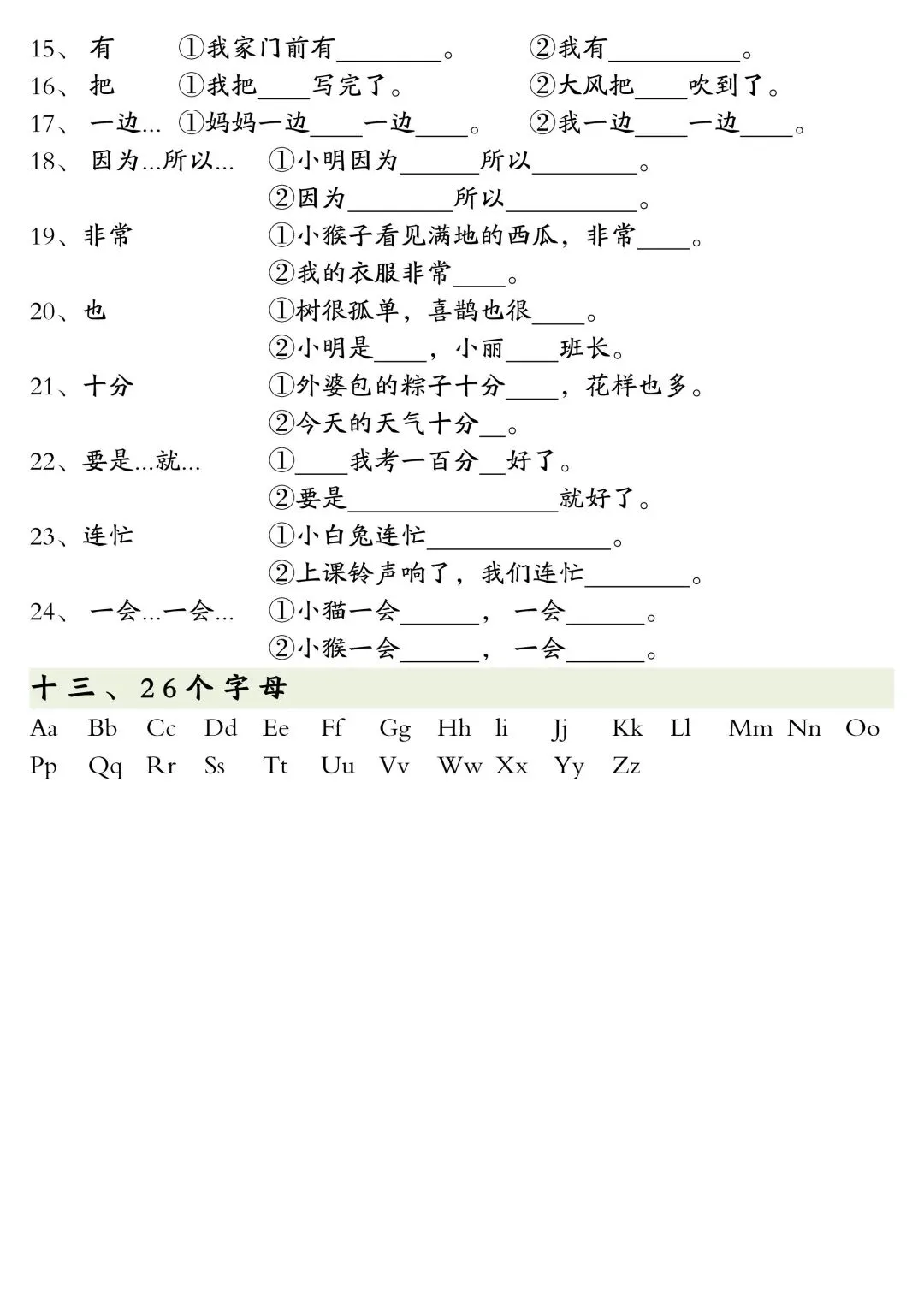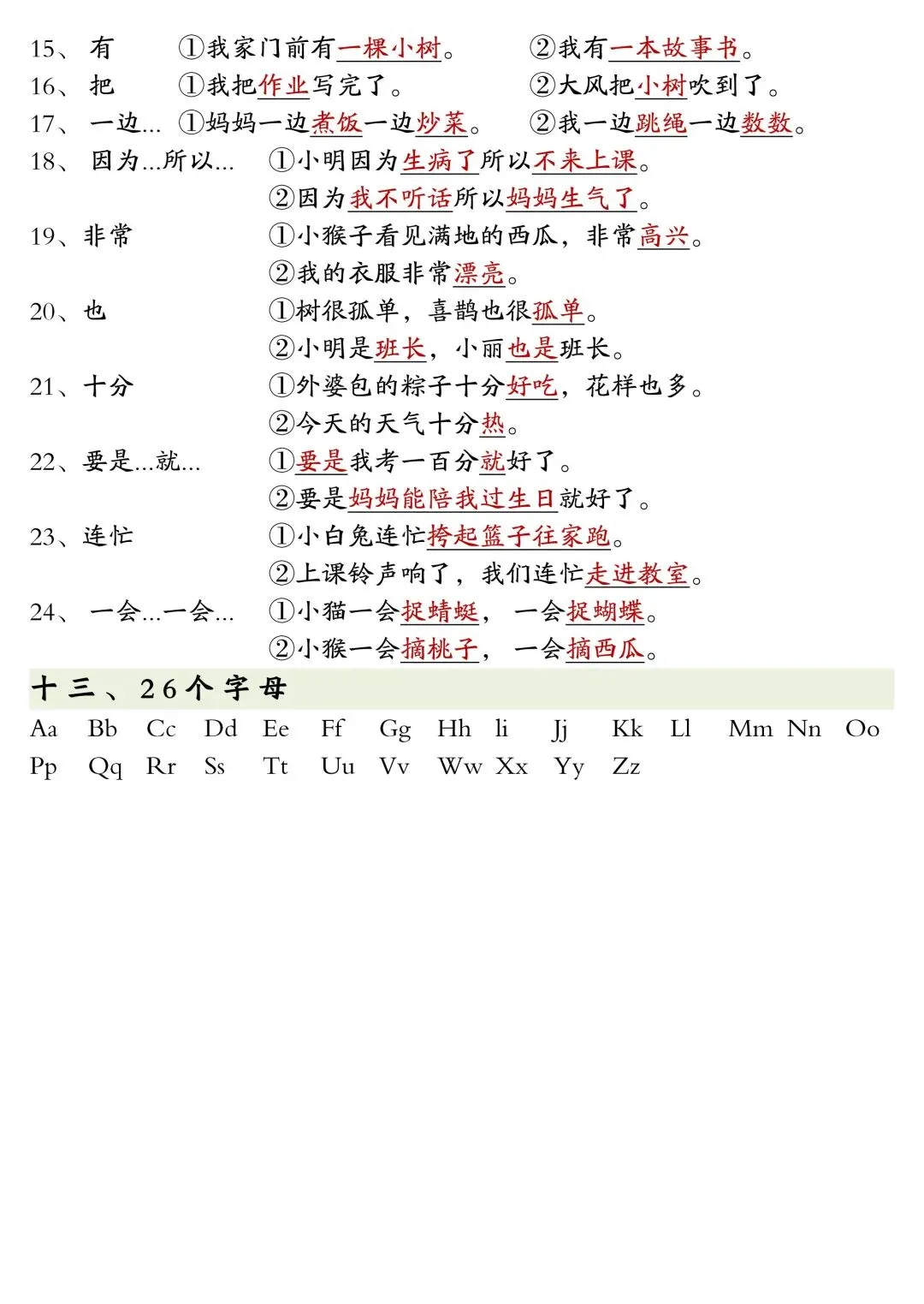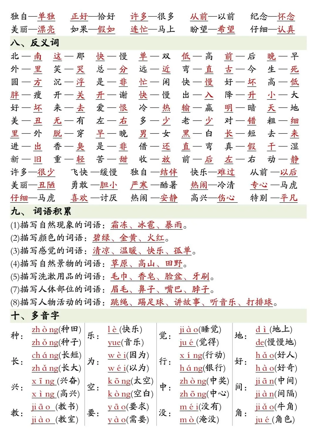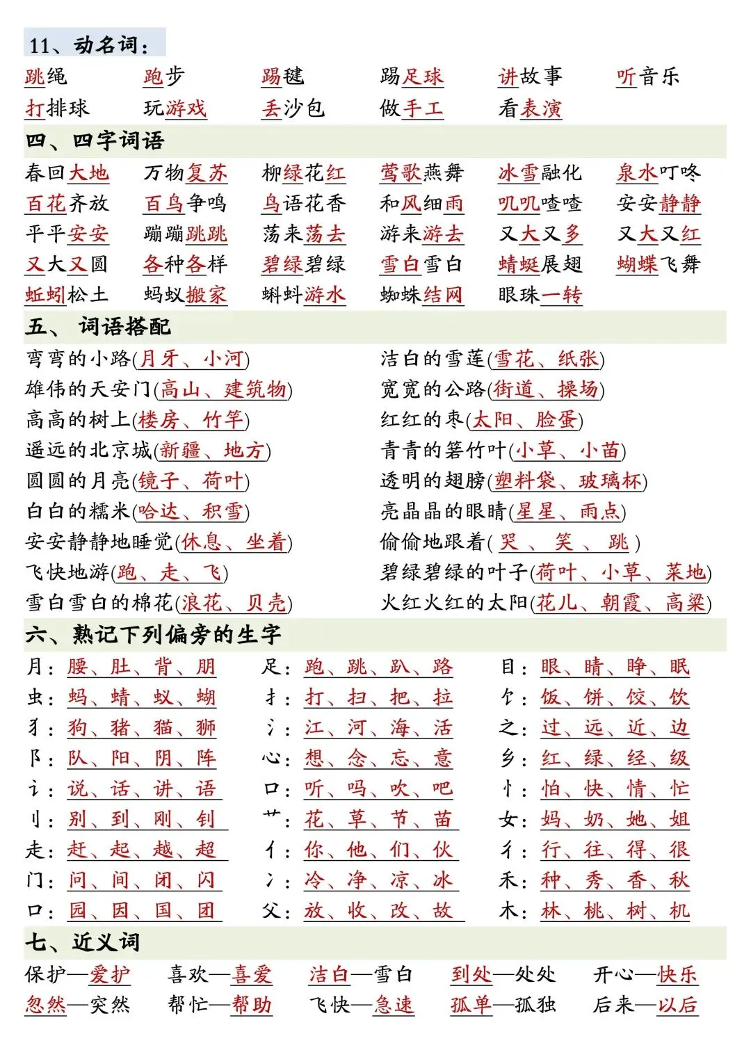 一年级下册语文全册重点知识复习资料,PDF电子版,内容全,古诗、生词、近反义词、词语搭配、特殊词语、句子练习、同音字、26个字母啥的都有,适合期末复习、预习、巩固基础用~