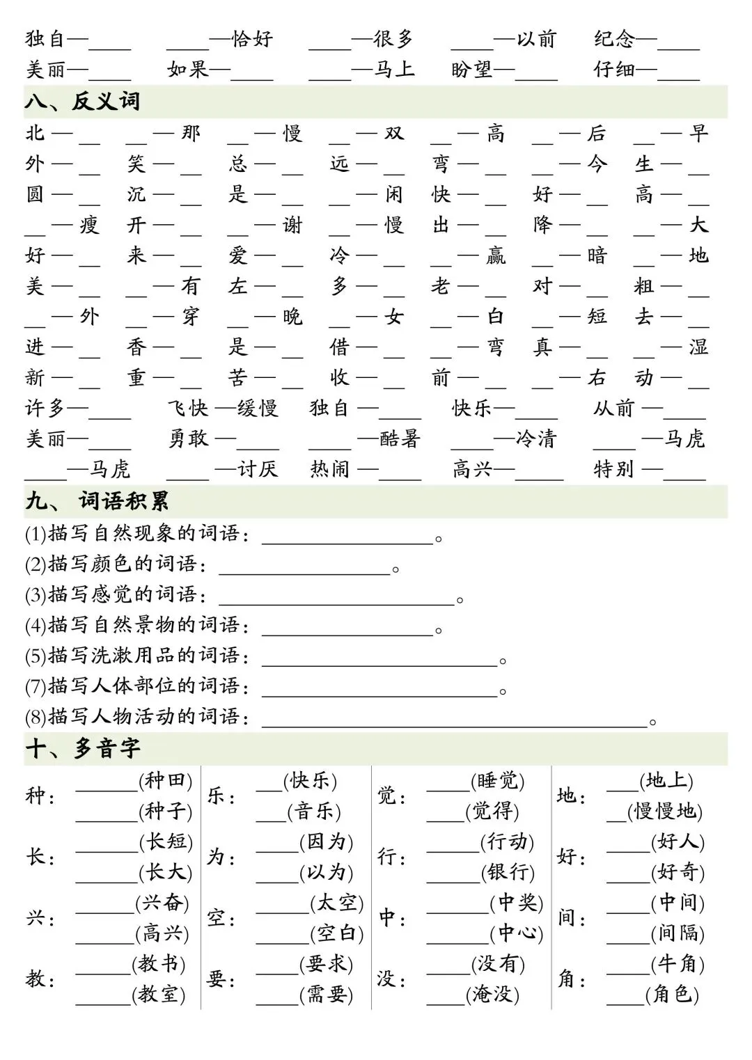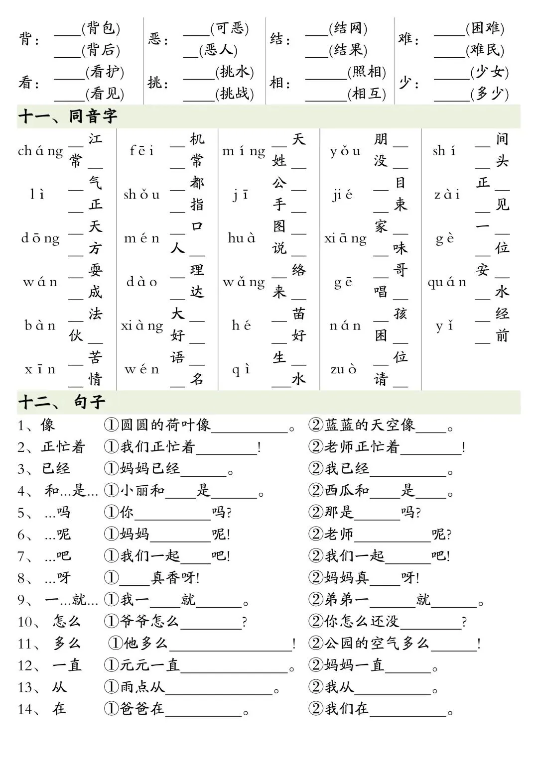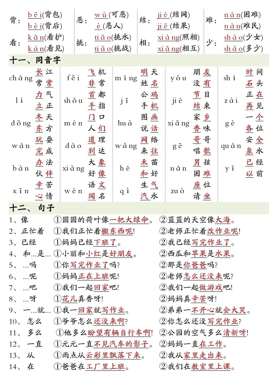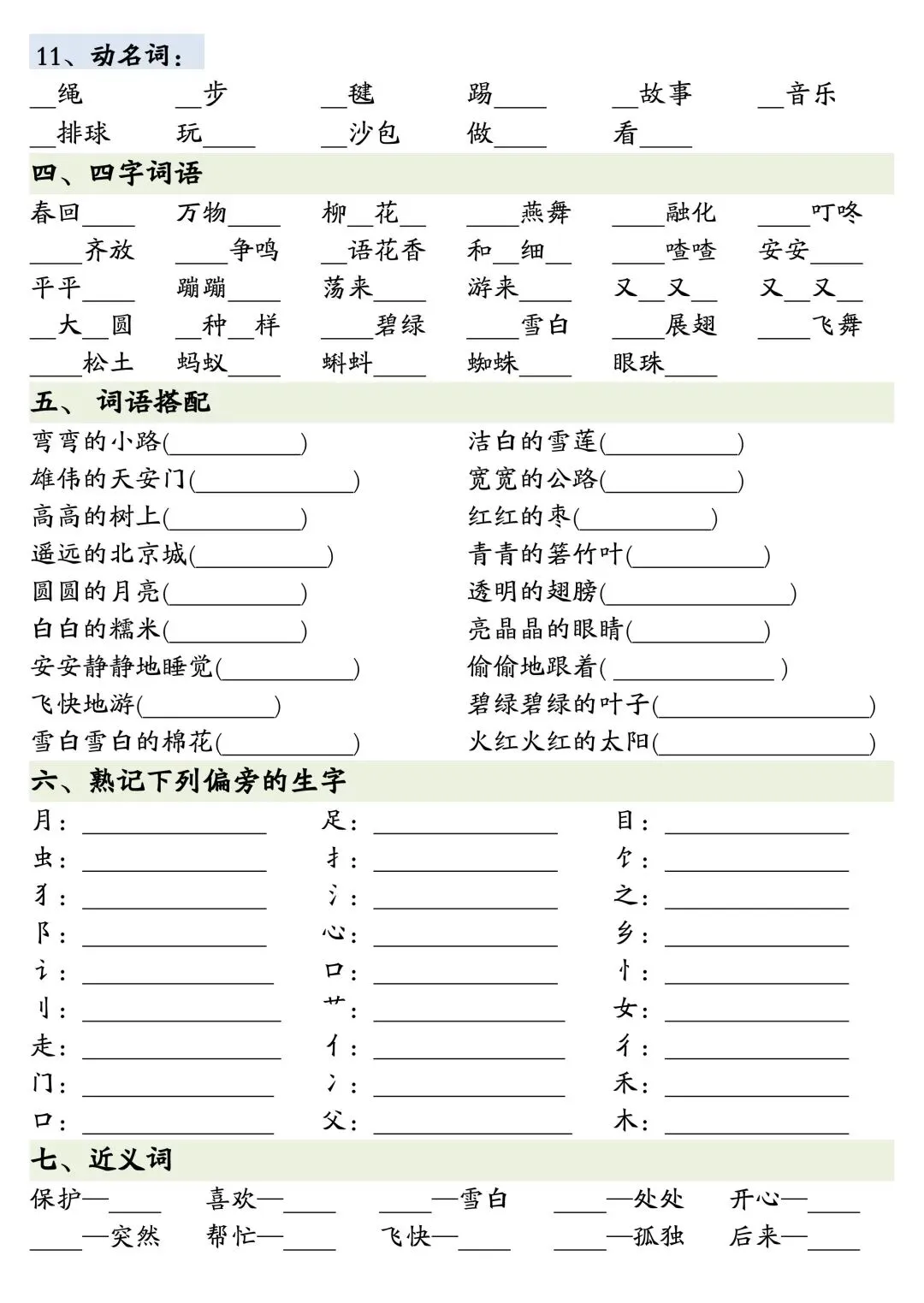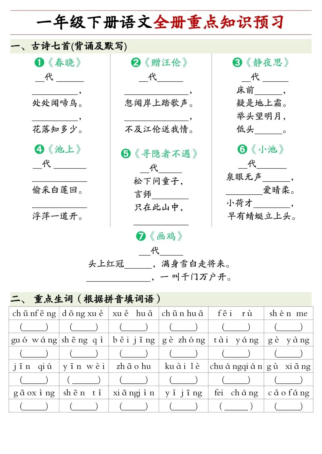 一年级下册语文全册重点知识复习资料