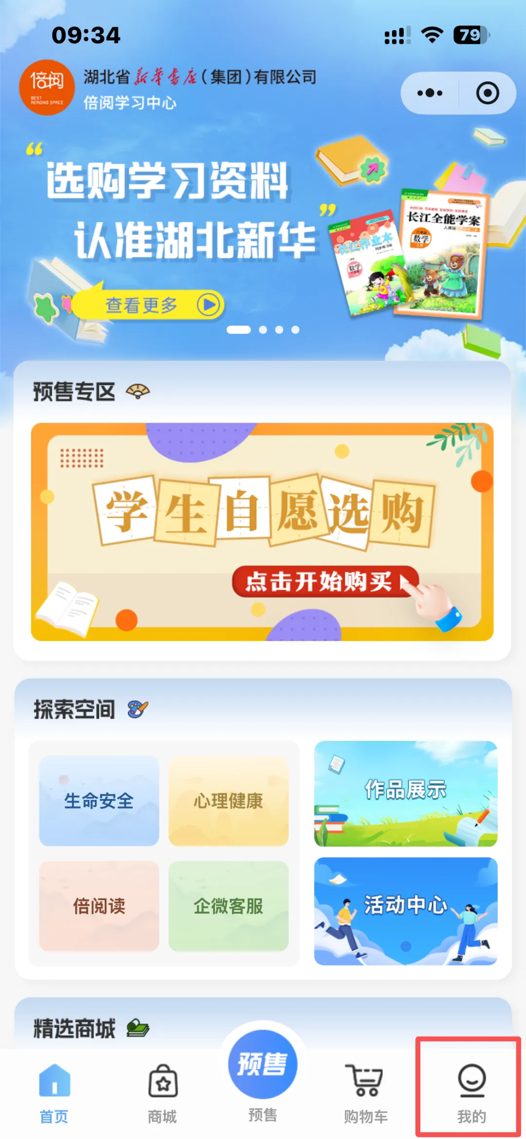 2.预购内容:请微信扫码或打开仙桃市新华书店官方微信小程序" 倍阅学习中心 ",进行学生绑定,系统会根据年级生成推荐的市场型教辅书目。