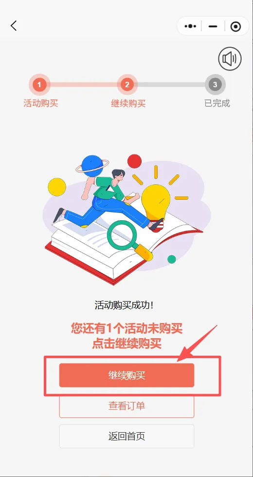 若还需购买其他学习材料,付款后,点击“继续购买”再重复以上步骤。