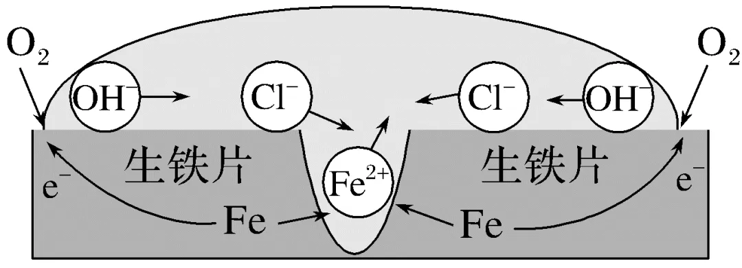 答案 液滴边缘形成红色环,生铁片中心产生蓝色沉淀