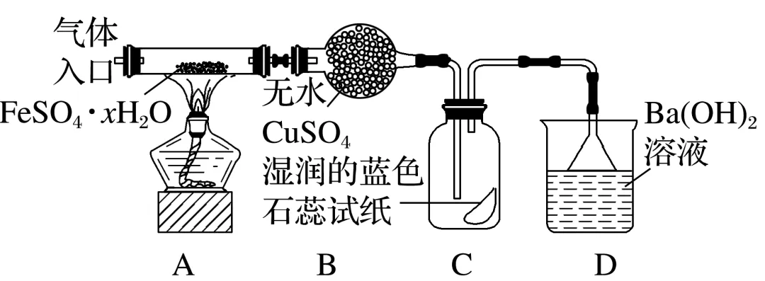 例2 探究绿矾的热分解产物,某化学实验小组用如图所示装置进行实验(夹持仪器略)。