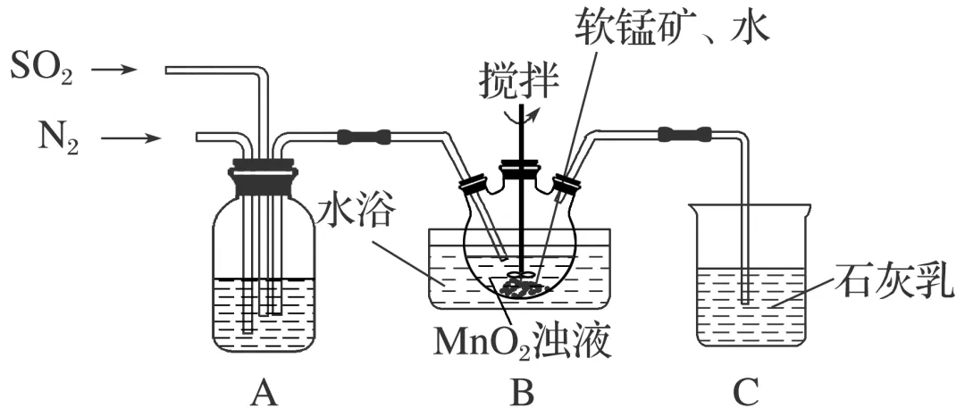 (1)制备MnSO4溶液:m g软锰矿粉经除杂后制得MnO2浊液,向MnO2浊液中通入SO2,制得MnSO4溶液,实验装置如下图所示(夹持和加热装置略)。