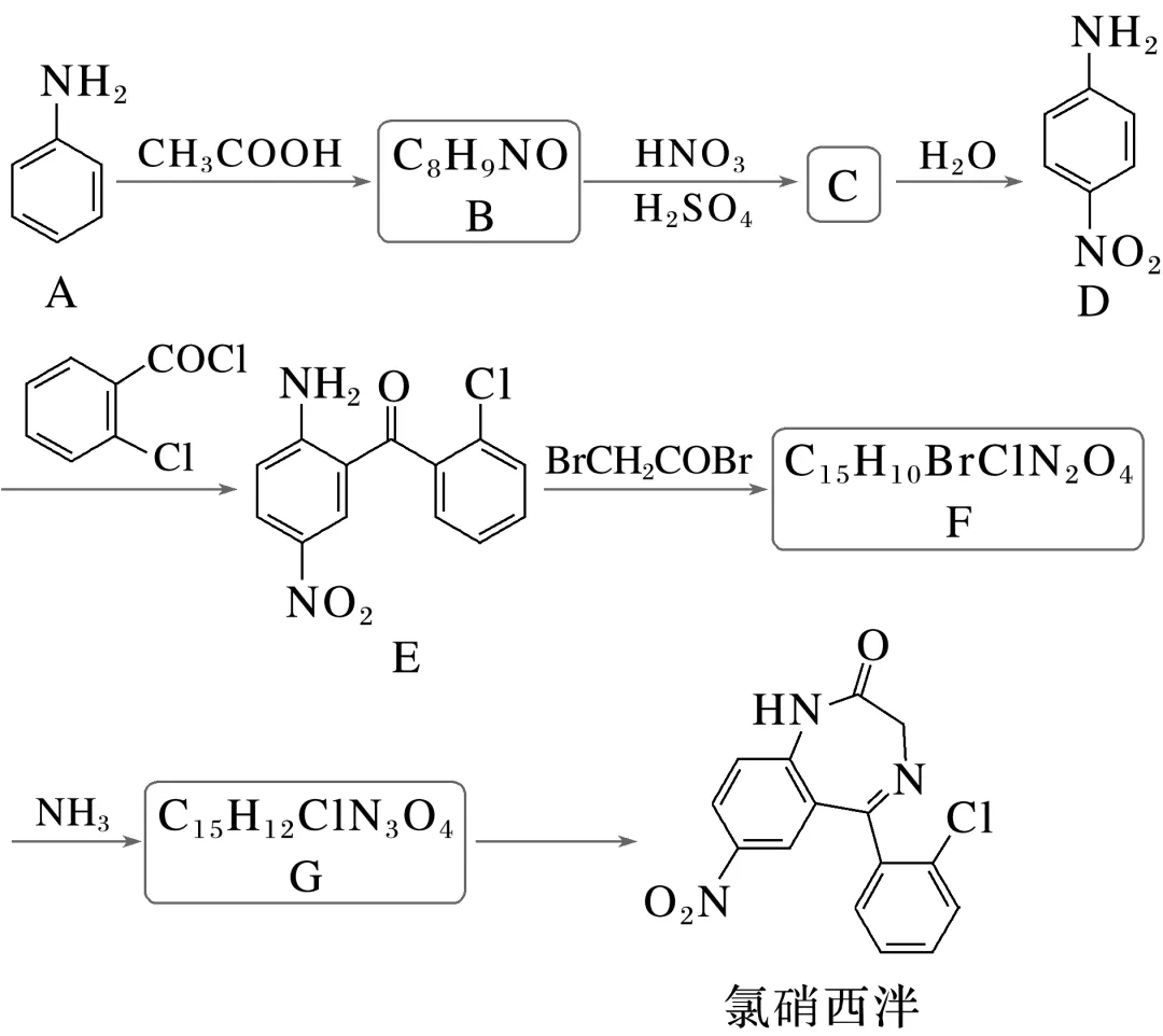 1.[2024·浙江1月选考,21(2)(3)]某研究小组通过下列路线合成镇静药物氯硝西泮。