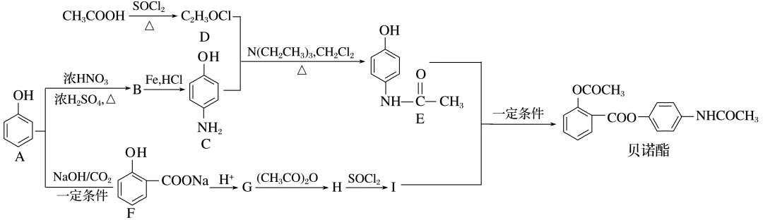 贝诺酯俗称扑炎痛,是一种新型的消炎、解热、镇痛、治疗风湿病的药物,其合成路线如图所示。