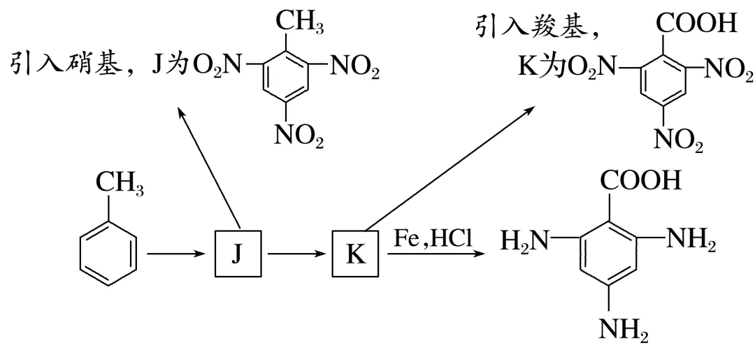 解析(4)由已知信息“苯环上有羧基时,引入的硝基取代间位上的氢原子”可知,苯环上需要先引入硝基,再引入羧基,最后将硝基还原为氨基,因此合成路线如下:
