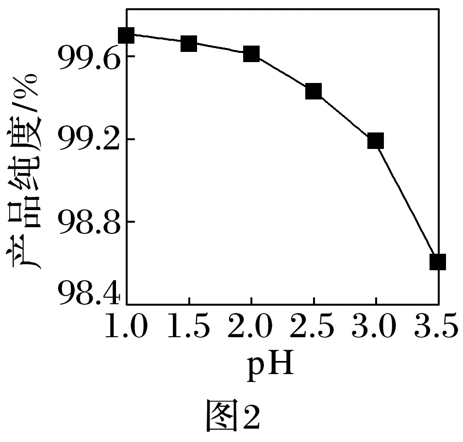 ③pH对产品纯度的影响如图2所示,沉淀过程时pH在2~3.5范围内,pH增大会导致产品纯度降低,产生的杂质为。