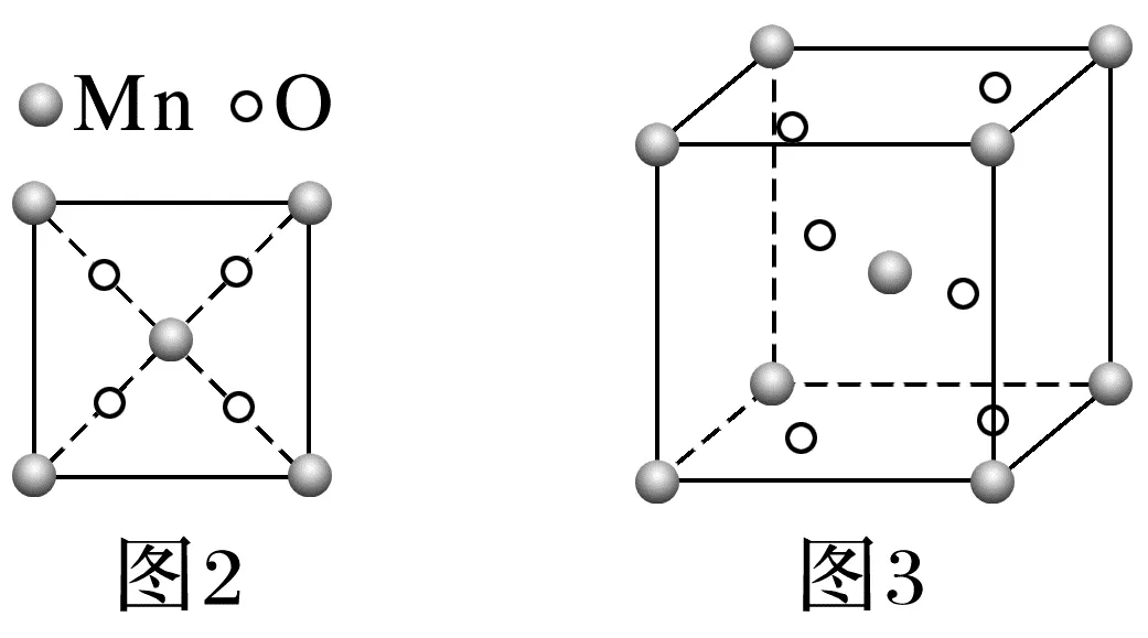 ②图2是MnO2晶胞沿三维坐标z轴方向的晶胞投影图,MnO2晶胞结构如图3所示。用“○”圈出所有位于晶胞体内的原子。