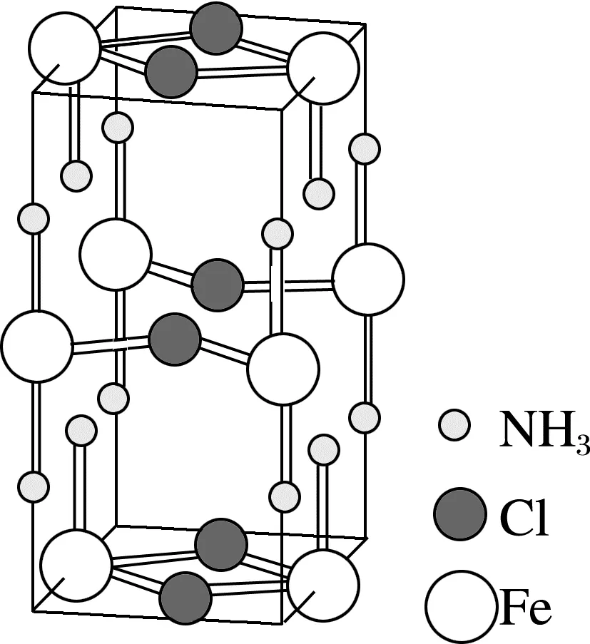 解析由图可知,Fe(NH3)2Cl2晶体中存在离子键、配位键、分子间作用力,具有分子晶体和离子晶体的特性,属于混合晶体,A正确;NH3与二价铁通过配位键形成[Fe(NH3)2]2+,B正确;Fe(NH3)2Cl2与水反应可以生成Fe(OH)2沉淀,化学方程式为Fe(NH3)2Cl2+2H2O===Fe(OH)2↓+2NH4Cl,C正确;Fe(NH3)2Cl2中[Fe(NH3)2]2+离子半径大于Fe2+,[Fe(NH3)2]2+与Cl-之间的键能小于Fe2+与Cl-之间的键能,Fe(NH3)2Cl2热稳定性比FeCl2弱,D错误。