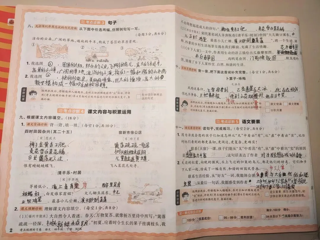 萱宝第一单元已经学完,周末语文用王朝霞考点梳理做了复习,完成了复习卷,查漏补缺