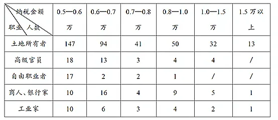 2.(2023·辽宁高考·13) 表1 1840年法国最高纳税人职业表(纳税货币单位:法郎)