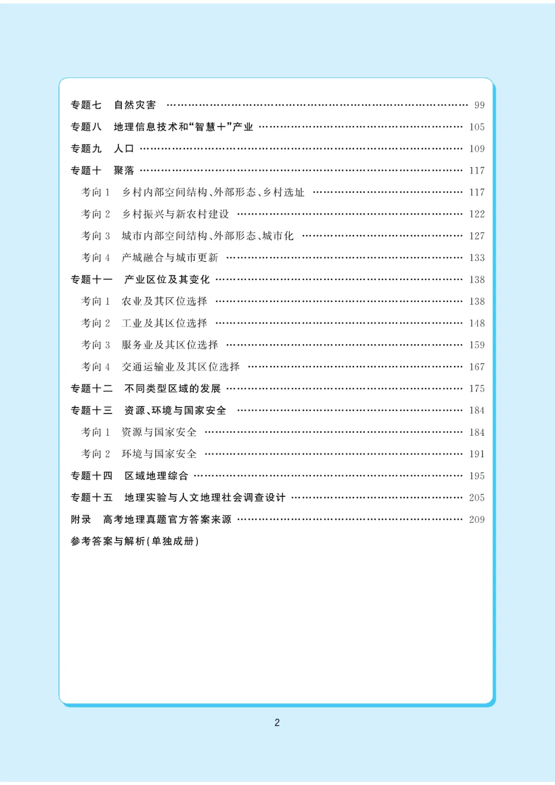 下面我来给大家介绍一下这本书,首先是体例,我们在分类方面采用了大多数学校通用的专题复习分类方案,同时将今年新出现的地理实验和人文地理社会调查设计类题目划分为一个专题,总共划分为十五个大专题;部分大专题又划分不同考向,共32个考向,其中不少考向是我们首创的新提法,比如天象观测、乡村振兴、产城融合、城市更新等。
