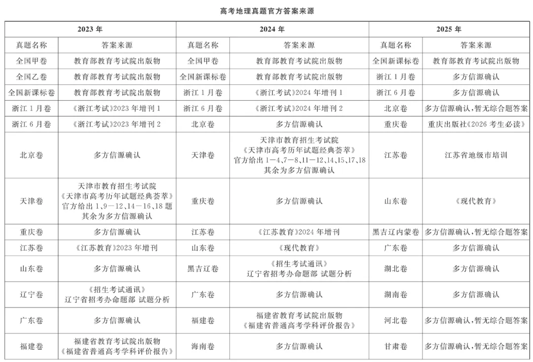 搜集整理高考地理官方答案并制作解析的工作,我们从去年就开始做了。初衷就是想尽可能地为老师和同学们提供一份权威、准确的官方答案。同学和老师们或许都有体会,每次做完高考真题,很多时候没法用教辅后边的答案来对照改错,实在增添了太多的麻烦。
