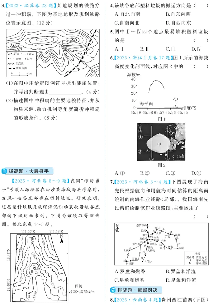 对于近三年的高考地理真题,除了定稿前尚未流出的2025年贵州卷、2025年天津卷、23-25年上海卷之外,其它共60套高考地理真题(2023年17套、2024年21套、2025年22套),每套试题均有题目选入,有的试卷全部选入,尽可能地做到将优质试题囊括在内。
