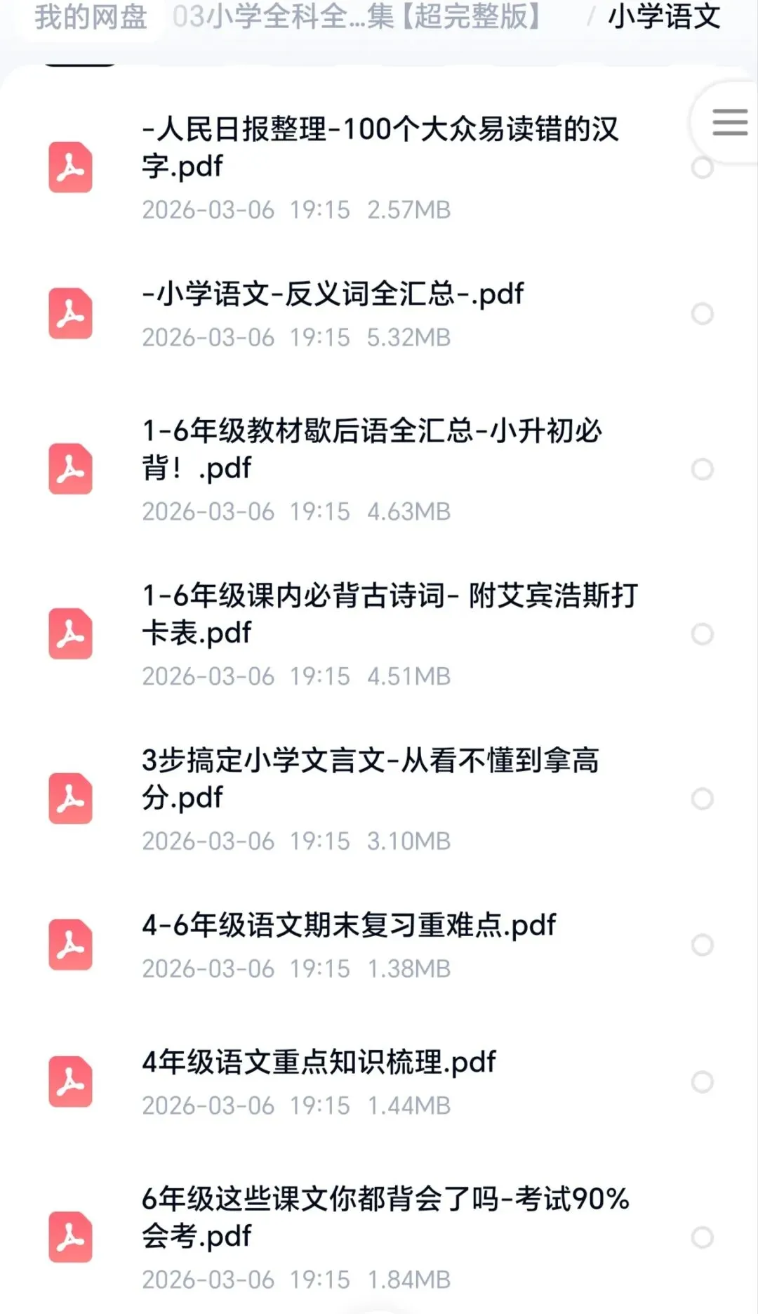 今天一次性把1-6年级语文、数学、英语核心资料全部整理好,高清PDF、可下载、可打印,全国通用!