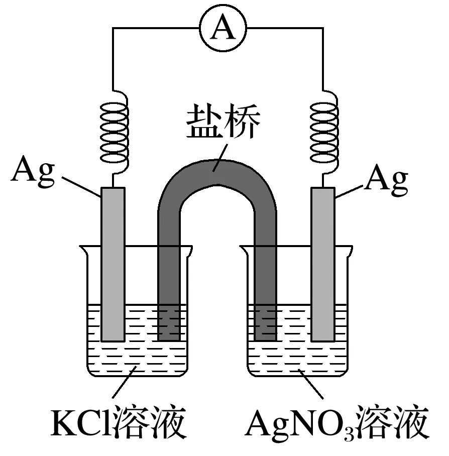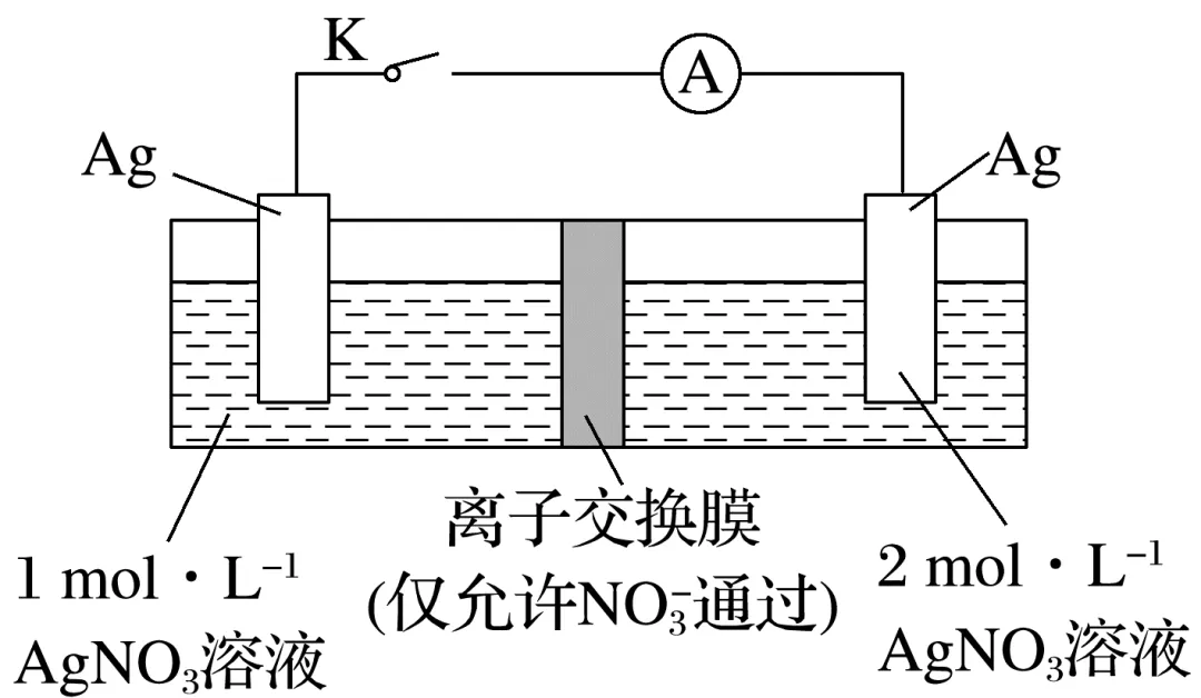 闭合开关K后,电子由溶液浓度小的一极流出 | 负极:Ag-e-===Ag+; 正极:Ag++e-===Ag |