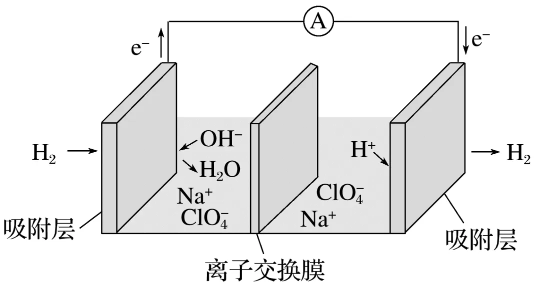 | 负极:H2-2e-+2OH-===2H2O; 正极:2H++2e-===H2↑; 总反应:H++OH-===H2O |