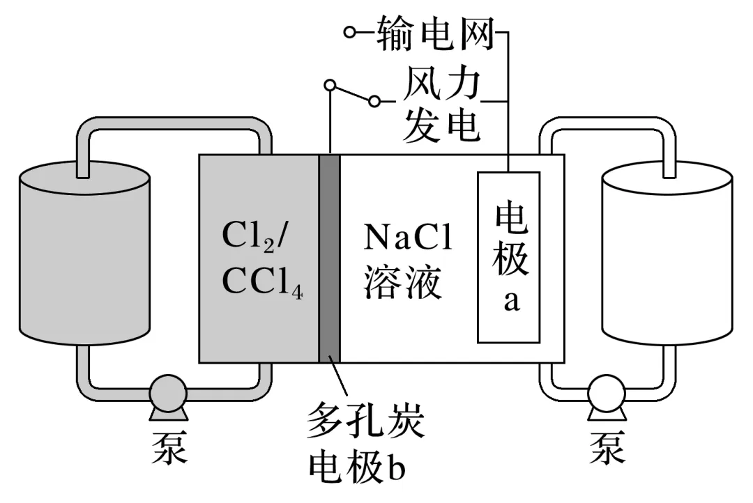2.(2022·广东,16)科学家基于Cl2易溶于CCl4的性质,发展了一种无需离子交换膜的新型氯流电池,可作储能设备(如图)。充电时电极a的反应为NaTi2(PO4)3+2Na++2e-===Na3Ti2(PO4)3。下列说法正确的是( )