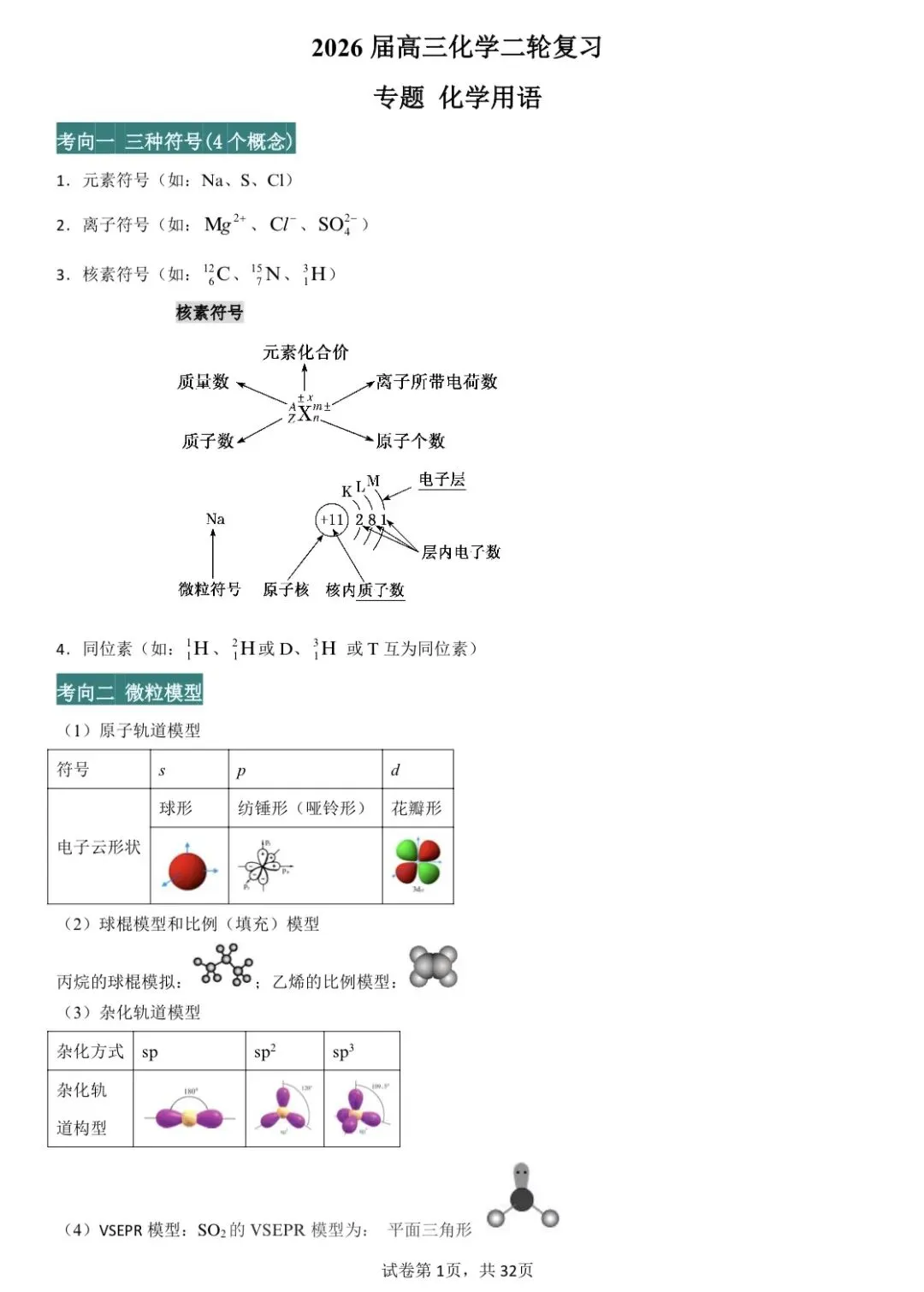 通过网盘分享的文件:2026届高三化学二轮复习专题 化学用语.docx