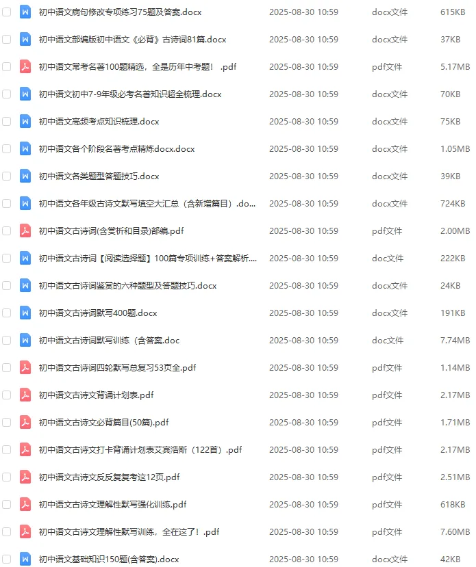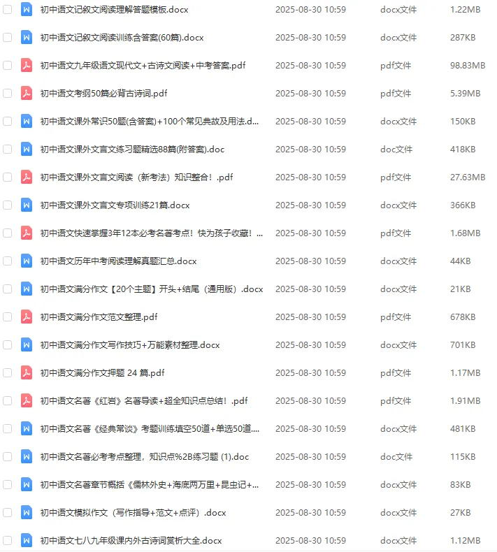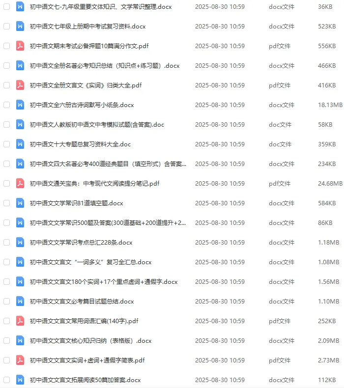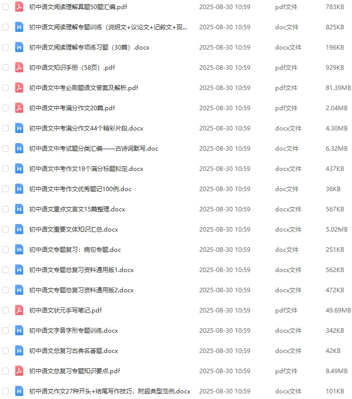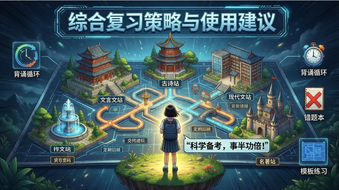 通过上述六大板块的系统学习与有计划的复习,学生能够在文言文的词汇与句法、古诗词的意象与情感、现代文的结构与论证、名著的内容与价值以及作文的表达技巧等方面形成完整的知识框架。结合高频考点、真题演练与答题模板的反复练习,既能提升平时的学习效率,也能在中考等大型考试中实现快速定位、精准作答,最终实现语文成绩的稳步提升。