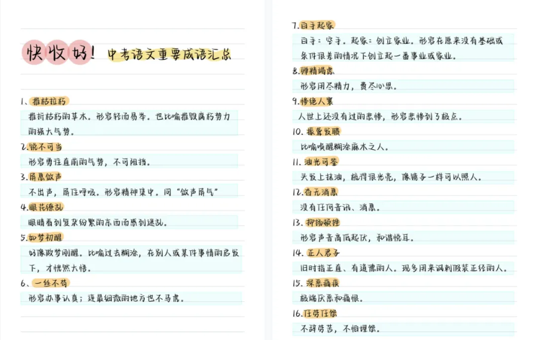 背诵循环:古诗词与文言实词采用“先读后写、间隔复习”法,配合默写小纸条每日练习,提升记忆持久度。