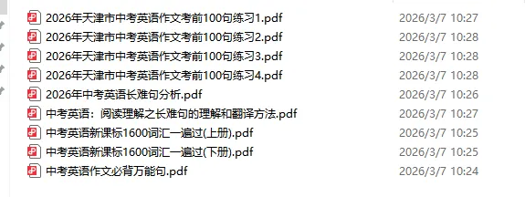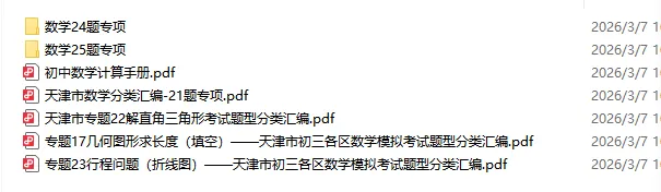 距离2026年天津中考还有不到100天时间,现在正是系统复习、查漏补缺的关键阶段!为了帮助广大考生高效备考,我们精心整理了语文、数学、英语三科的高质量复习资料,涵盖专项训练、模拟试卷、考点精讲、易错题汇编等,全部为PDF电子版,可直接下载打印!