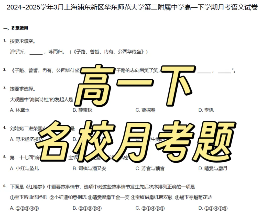 关注公众号,后台发送关键词【高一3月月考资料】即可免费领取~