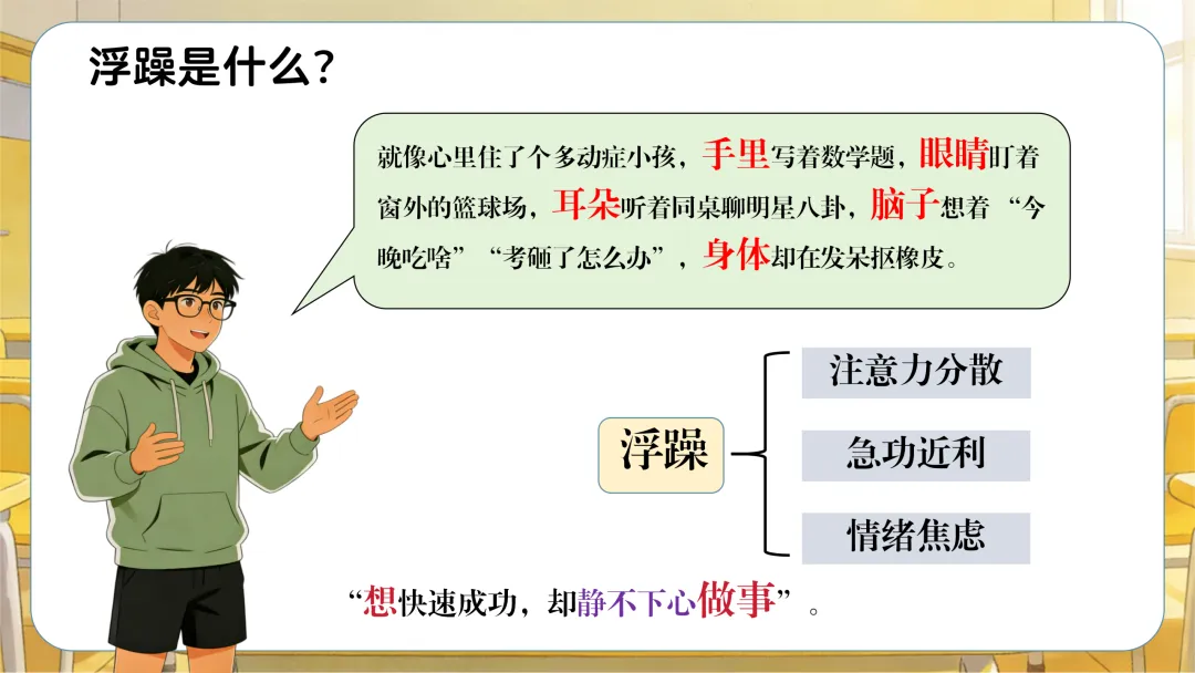 开场白:同学们,我们今天来聊聊“浮躁”这个老朋友