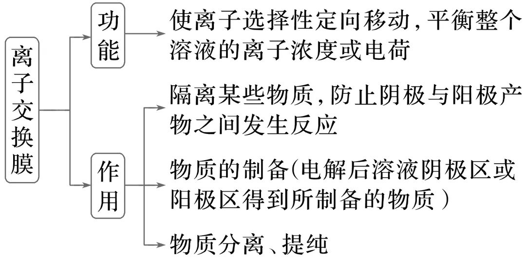 (2)第二步:分清隔膜类型。即交换膜属于阳膜、阴膜或质子膜中的哪一种,判断隔膜允许哪种离子通过。