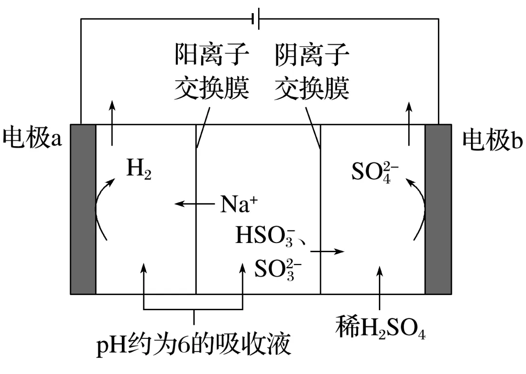 吸收液(或污水) | Na+穿过阳离子交换膜进入阴极室(左室);HS 和S 穿过阴离子交换膜进入阴极室(右室) |