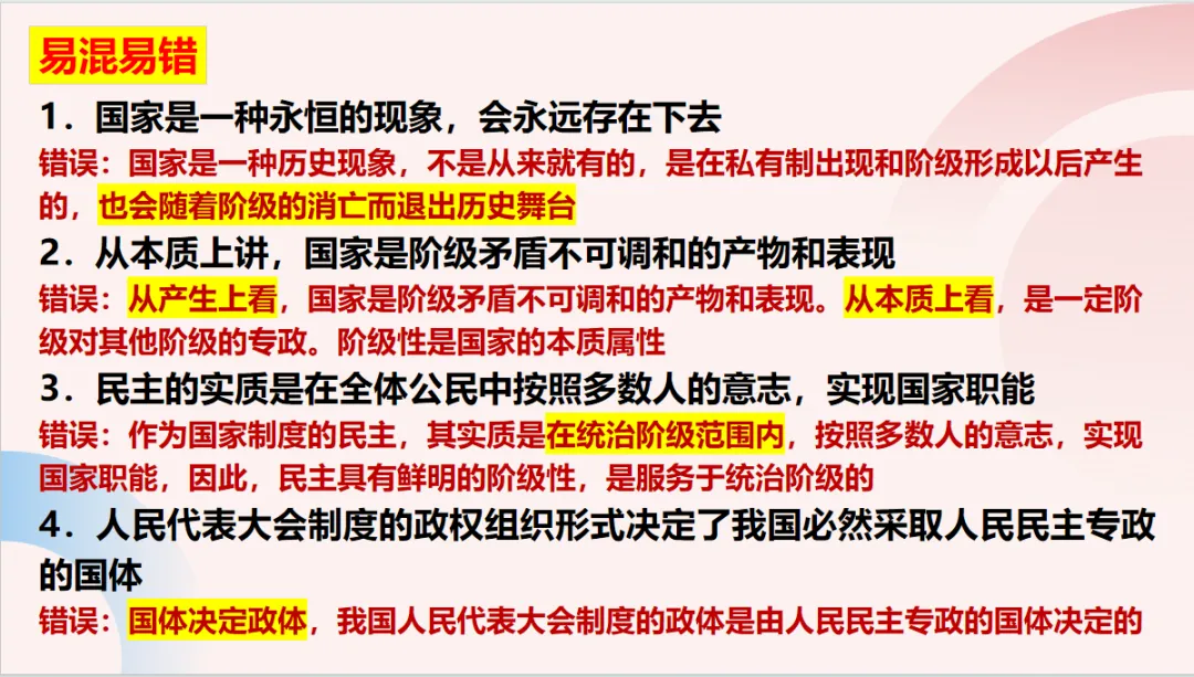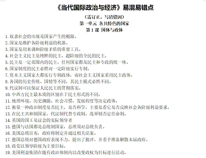 涵盖全书复习课件、背诵提纲、易错易混三大板块,从知识框架建构到选择题考点突破,再到主观题模板训练,形成“输入——内化——输出”的完整闭环,直击考试命脉。