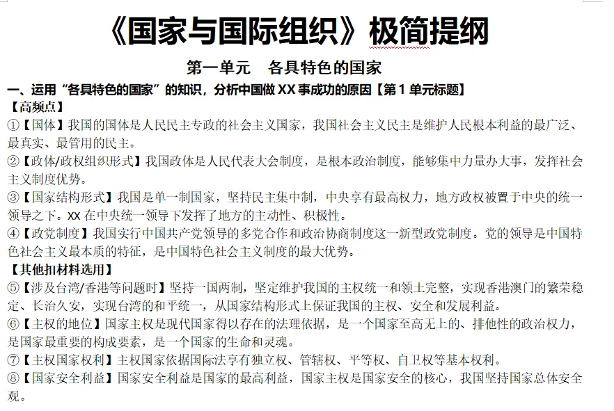 这套资料让我最省心的一点是:不用再给不同层次的学生分别准备材料了。基础弱的先背极简提纲,把核心分保住;基础好的两份一起过,细节点也能夯实。一份资料,自动分层,教学落地更轻松。
