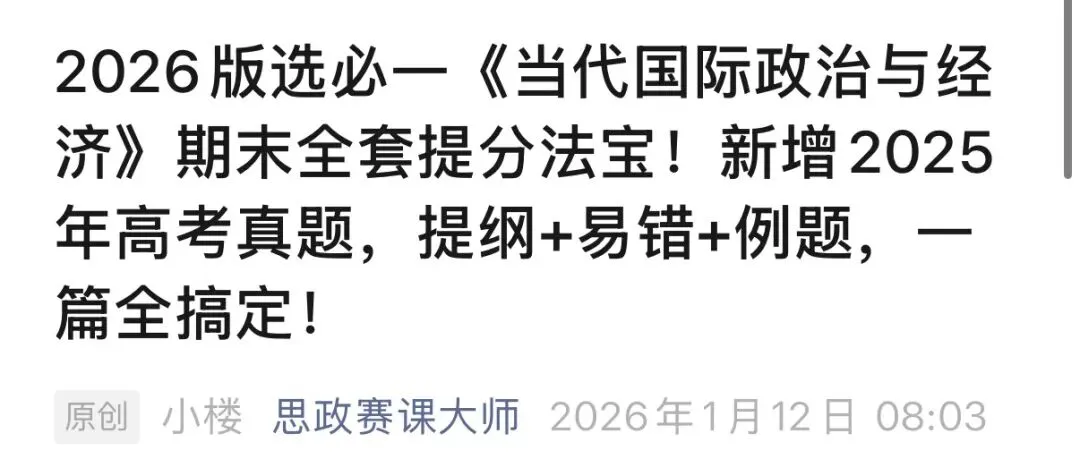 《当代国际政治与经济》这本书,在七本教材中算是主观题套路比较清晰的——很多题目问法不同,但背后的答题逻辑是相通的。教师要做的事,就是帮学生把这套逻辑梳理出来:考什么、怎么想、怎么写。