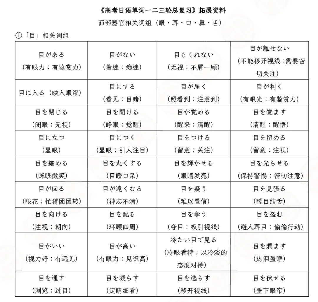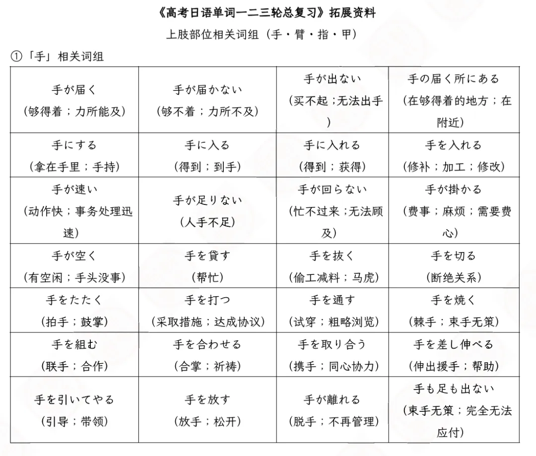 福利又来啦!💝 这次为大家带来的是《高考日语单词一二三轮总复习》的配套拓展内容——与“身体部位”相关的高频惯用词组!🎯