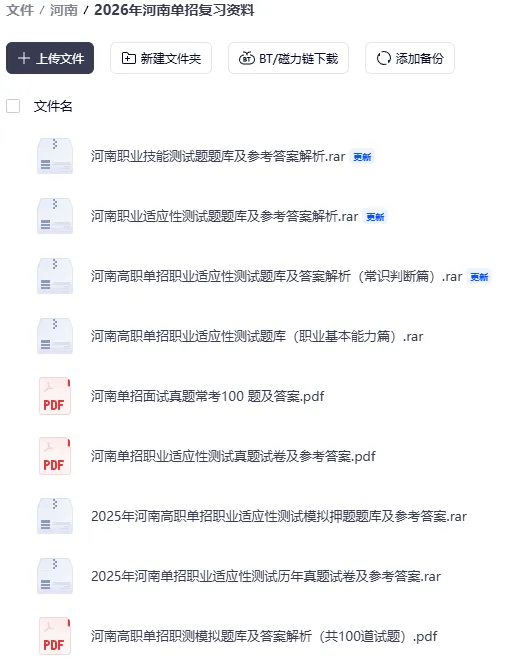 2026年河南单招复习资料、职业技能测试+适应性测试题库、面试100题、100道校测模拟题库汇总