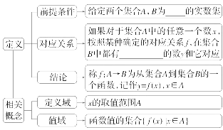 2.在函数的定义中,非空实数集A,B,A即为函数的定义域,值域为B的子集.