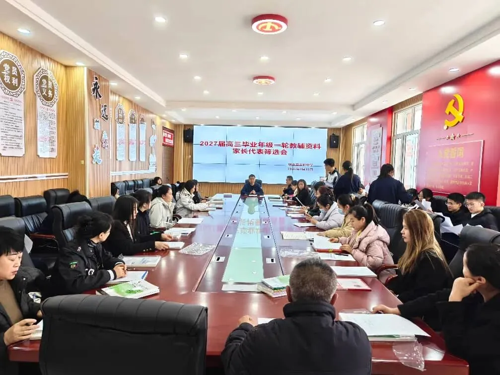 3.最终选定阶段:2026 年 3月 18 日下午,我校召开27届高三年级家长代表会,由家长、学生代表现场投票,最终确定各学科一轮复习教辅资料。
