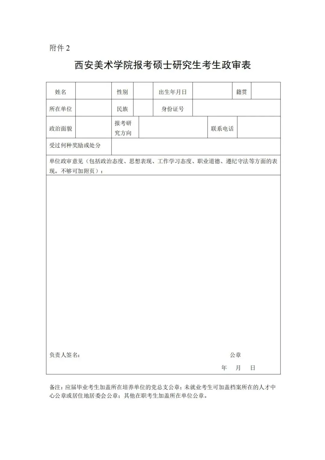 ⑤专业综合素质面试时须交纸质版资料:《西安美术学院2026年硕士研究生诚信复试承诺书》、《西安美术学院报考硕士研究生考生政审表》。