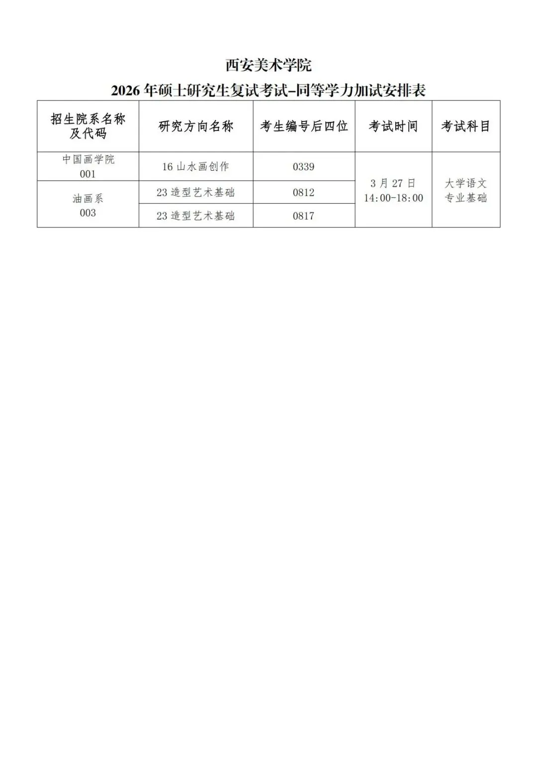 (4)地点:具体场次安排详见《西安美术学院2026年硕士研究生复试考试安排表》(附件3)