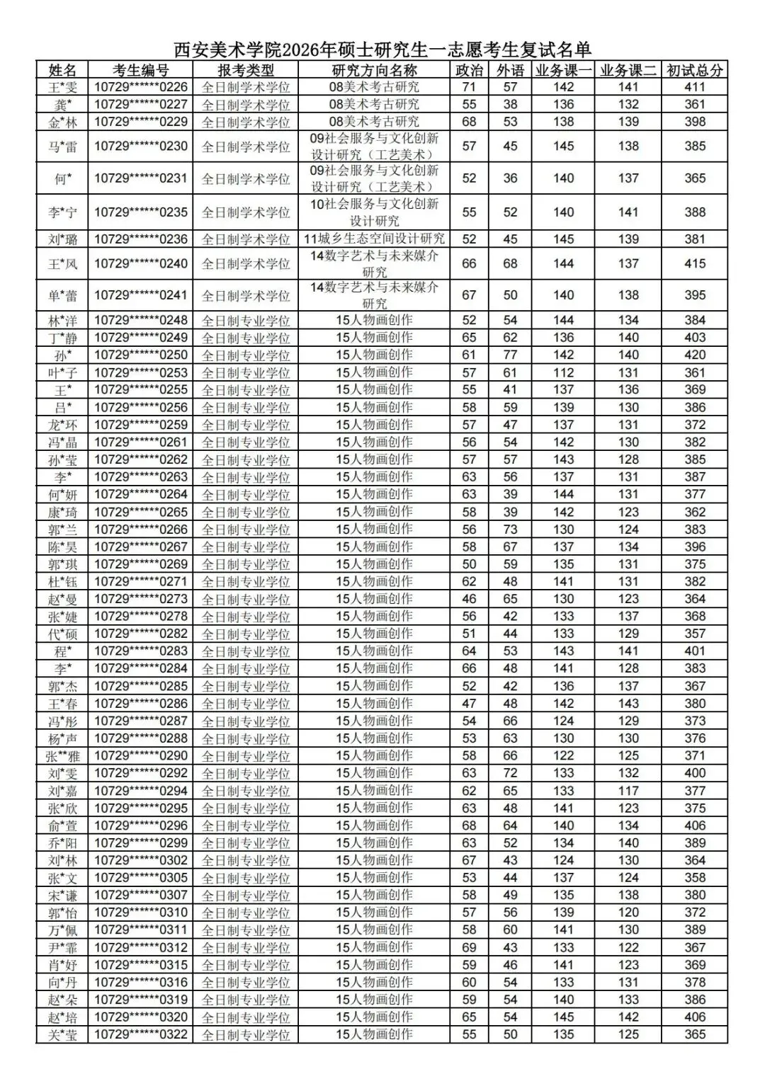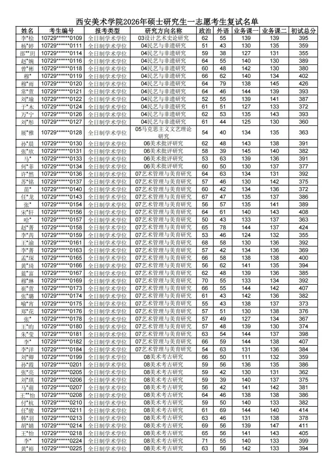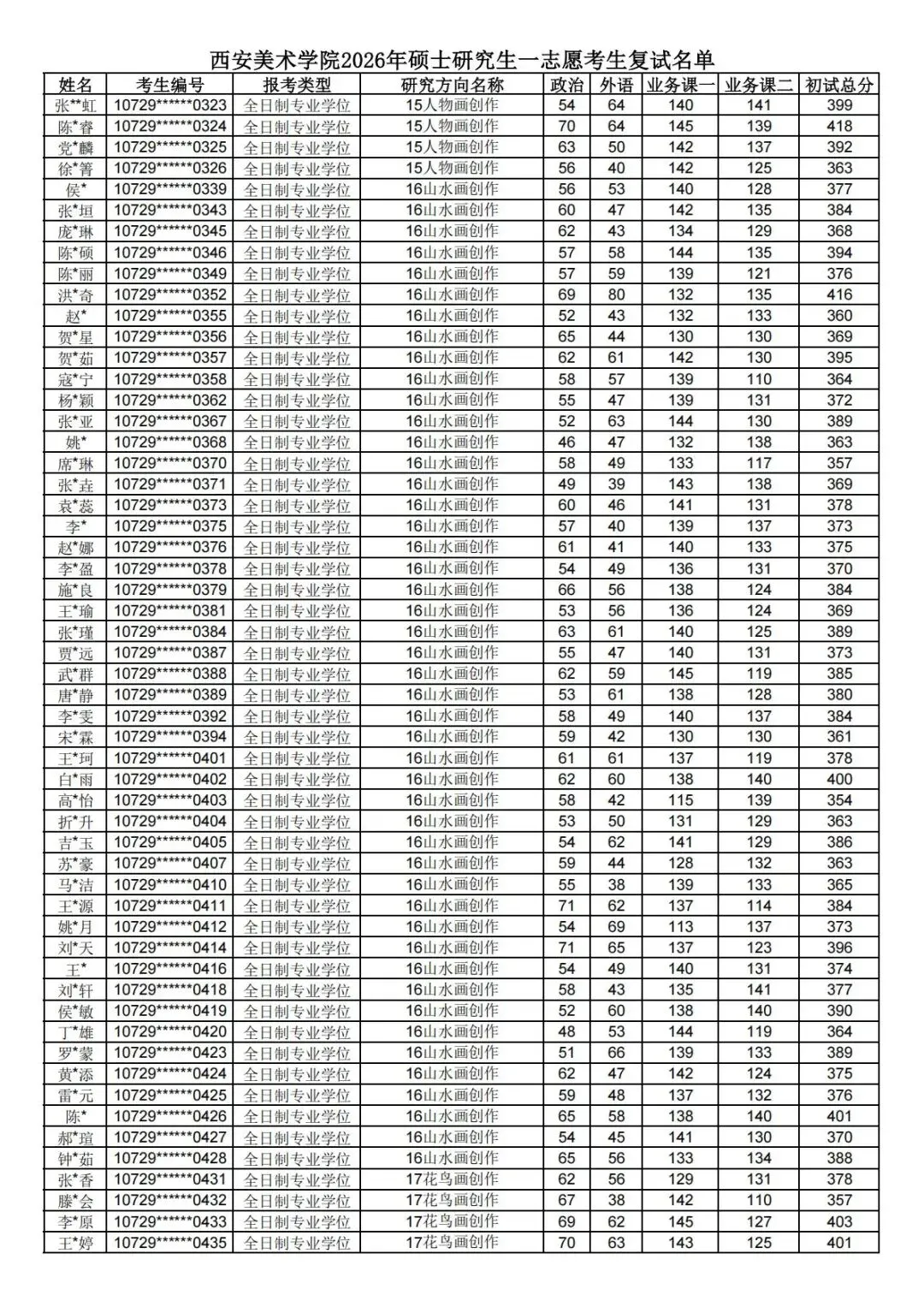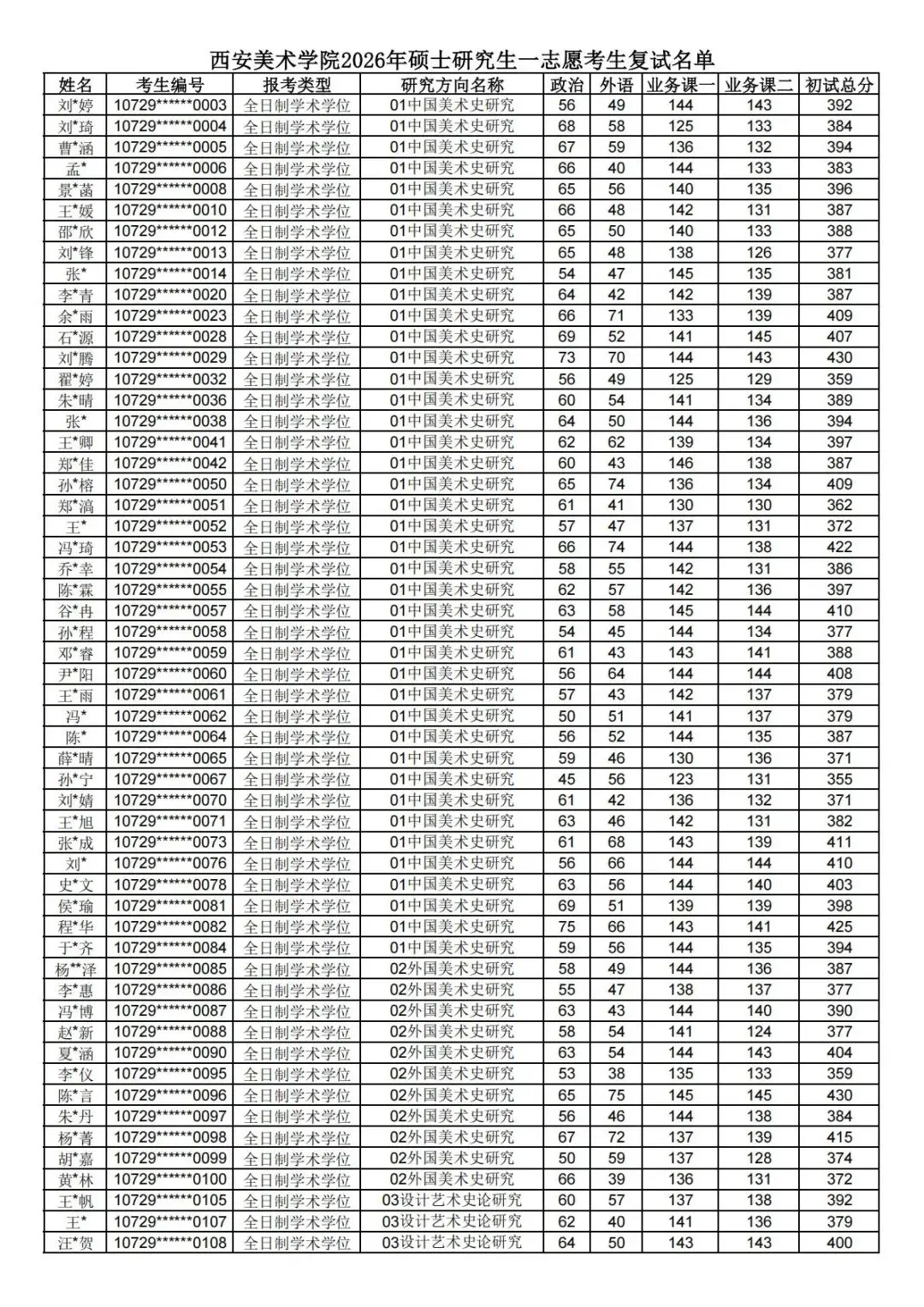 1.对符合拟录取条件的考生,依据《西安美术学院2026年硕士研究生招生计划拟分表》(后期根据工作进展适时发布),分研究方向按总成绩由高到低择优录取,如出现同分,按复试成绩、业务课二成绩、业务课一成绩依次排序。未完成的计划由学校统一调整。
